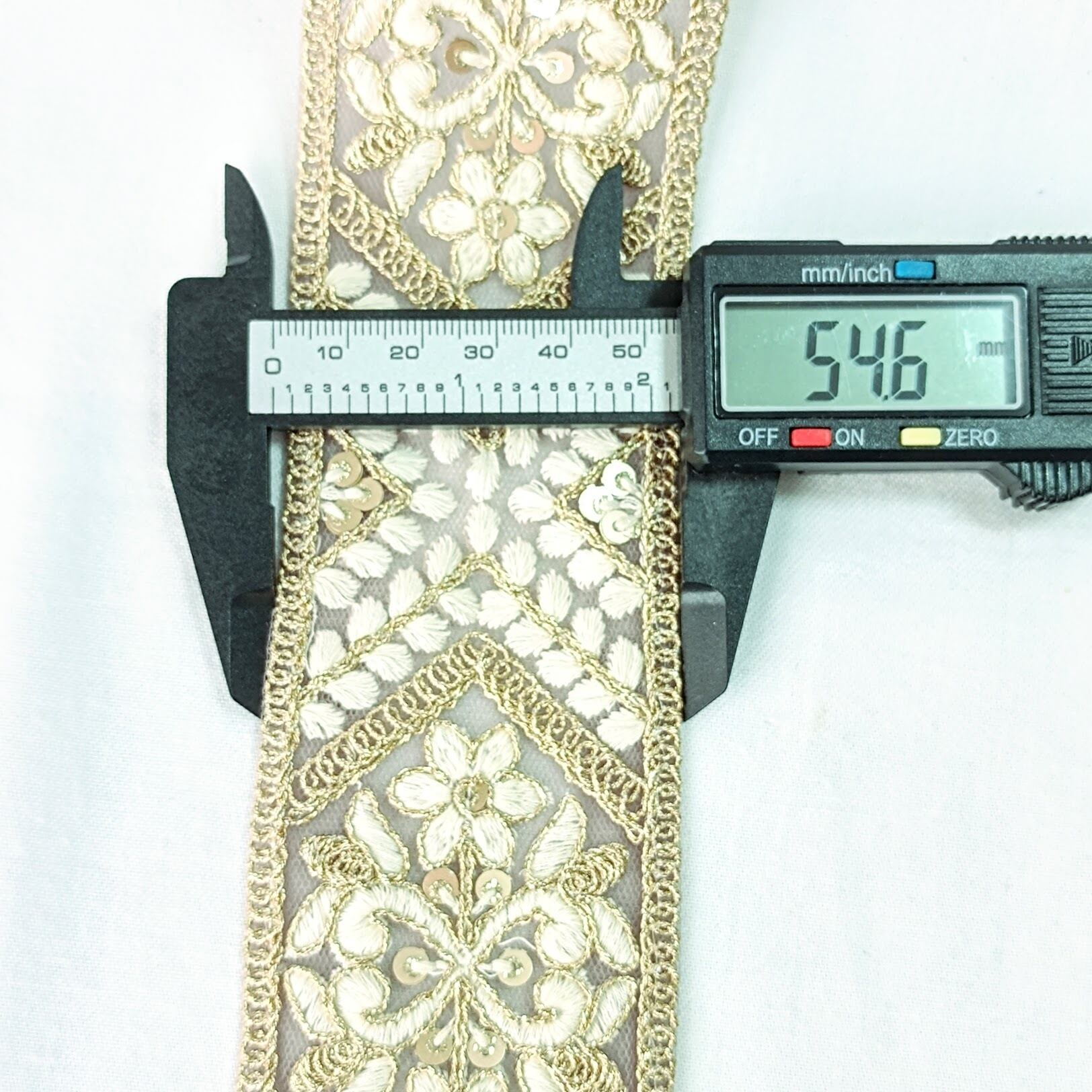 【50cm】【50mm幅】インド刺繍リボン 金糸 ゴージャス フラワー 花柄 手芸 ハンドメイド アクセサリーパーツ DIY R107
