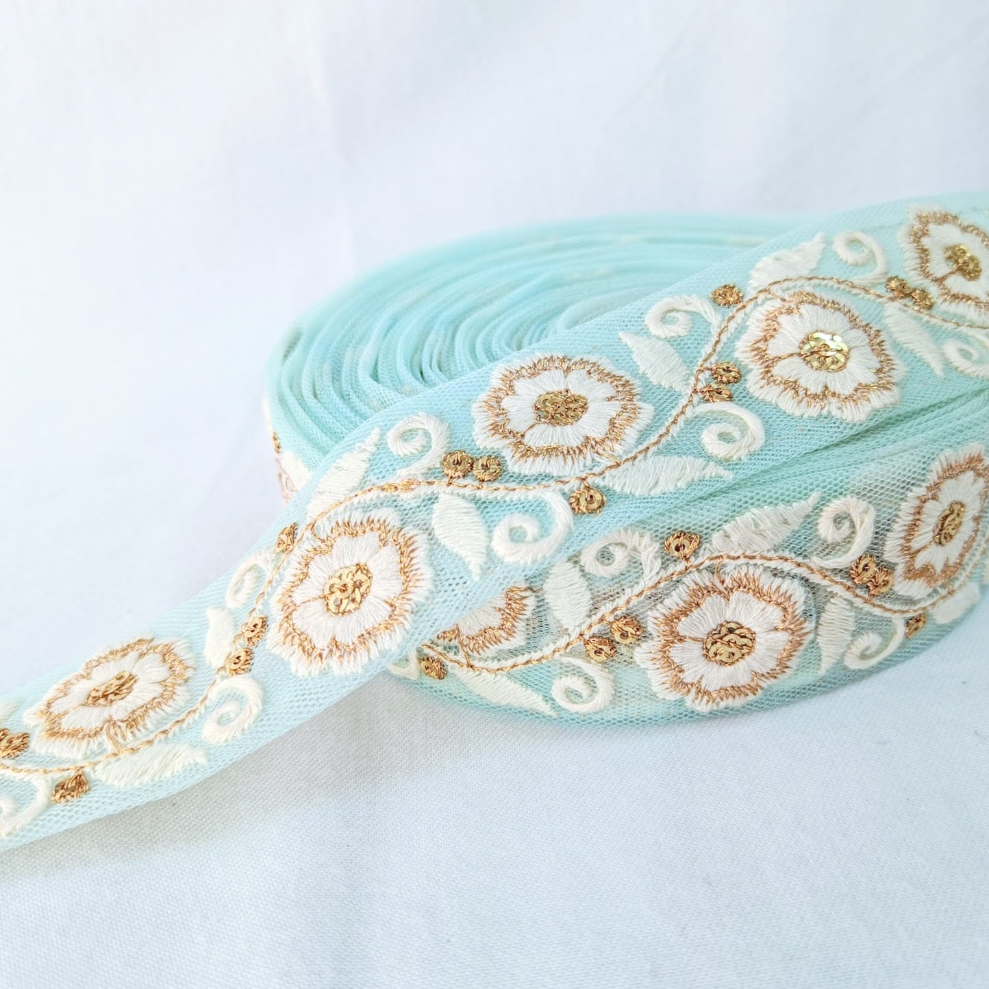 ※インド刺繍リボンは歪み、糸の未処理、継ぎ目、刺繍ミス等多々あります。予めご承知下さいませ。