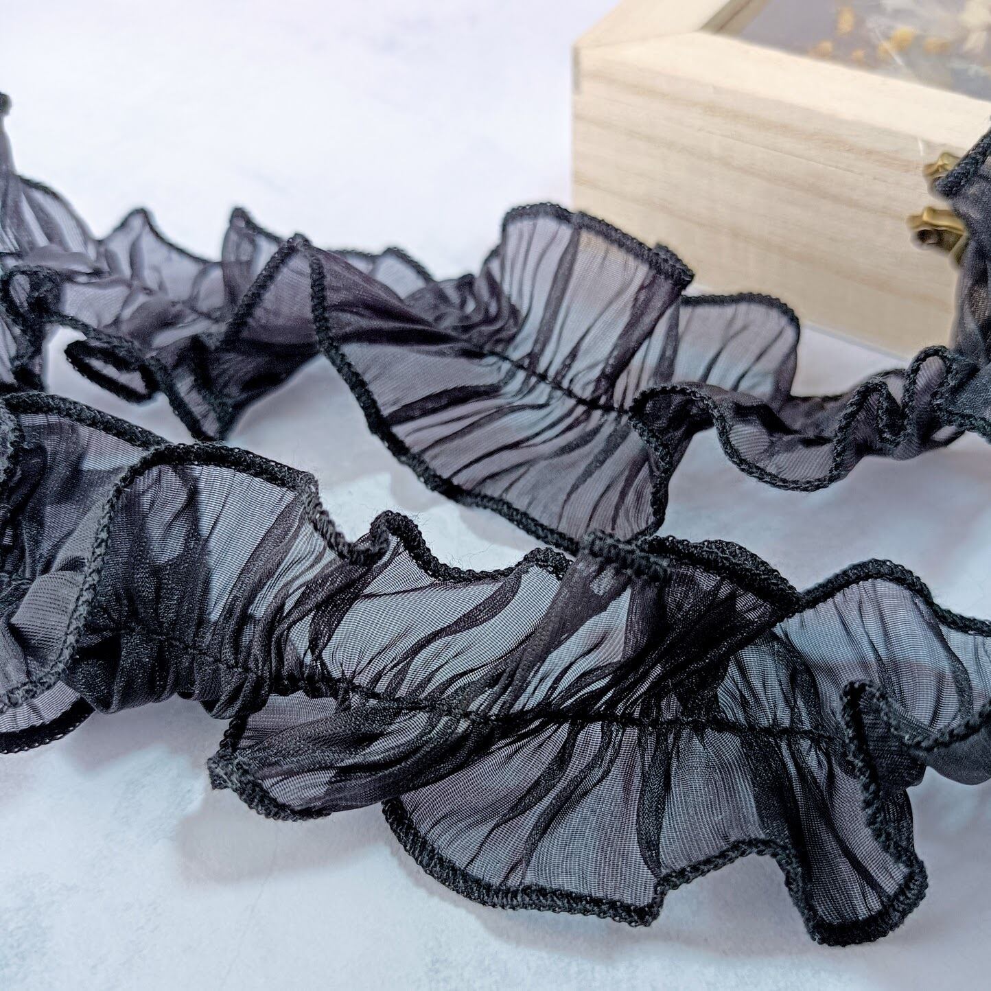 レースのシフォンギャザーリボンです。
