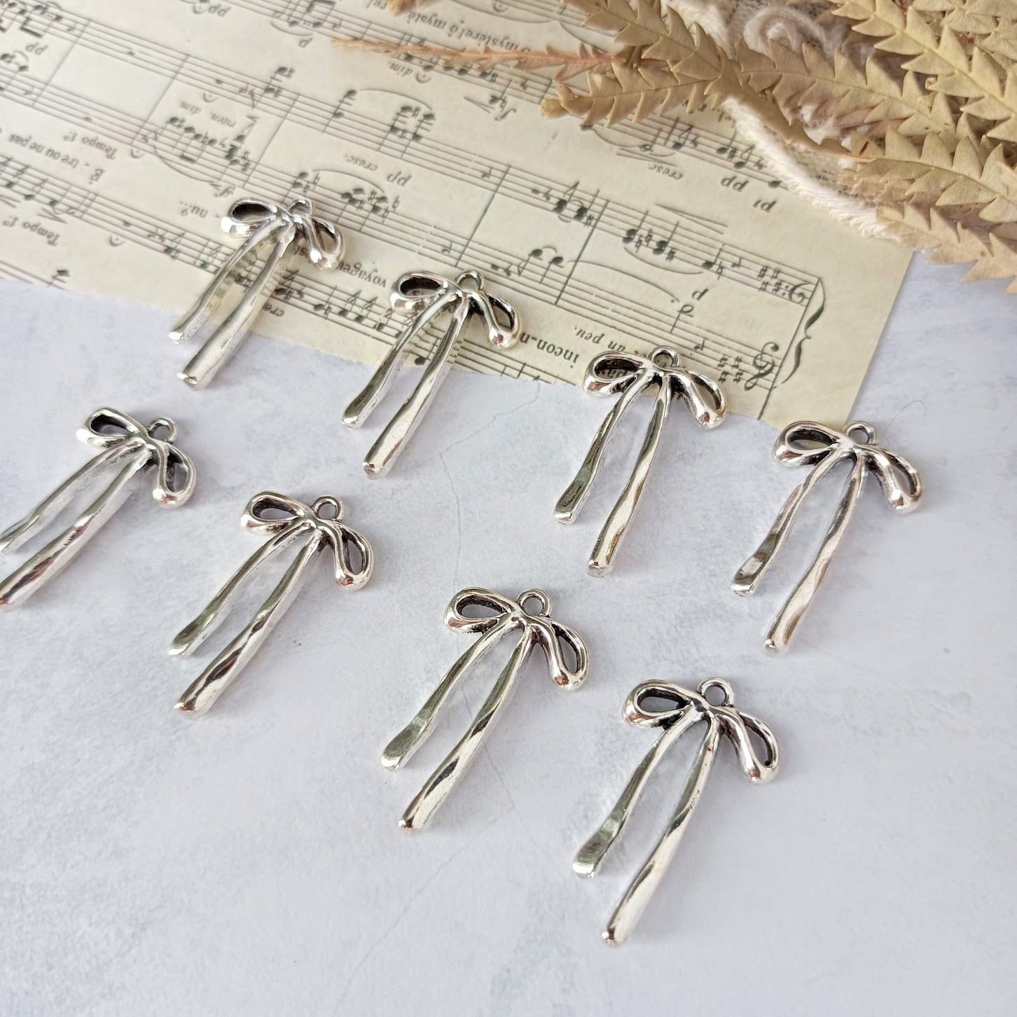 【10個】リボン 蝶結び ハート アンティークシルバー アクセサリーパーツ メタルチャーム MP202