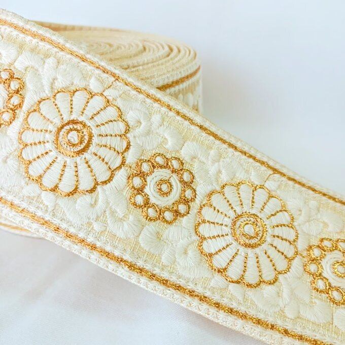 【30cm】【72mm幅】インド刺繍リボン 金糸 シンメトリー フラワーモチーフ 手芸 R066