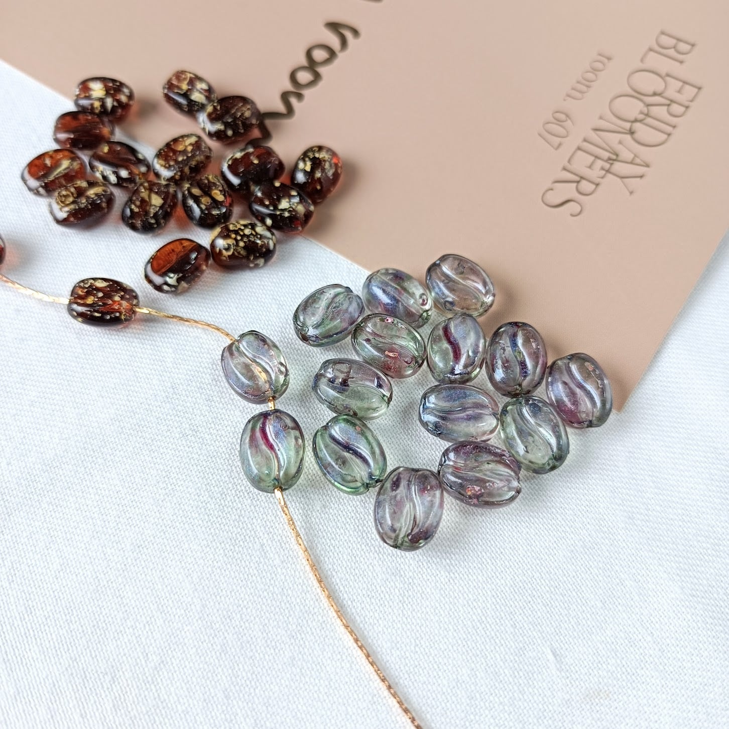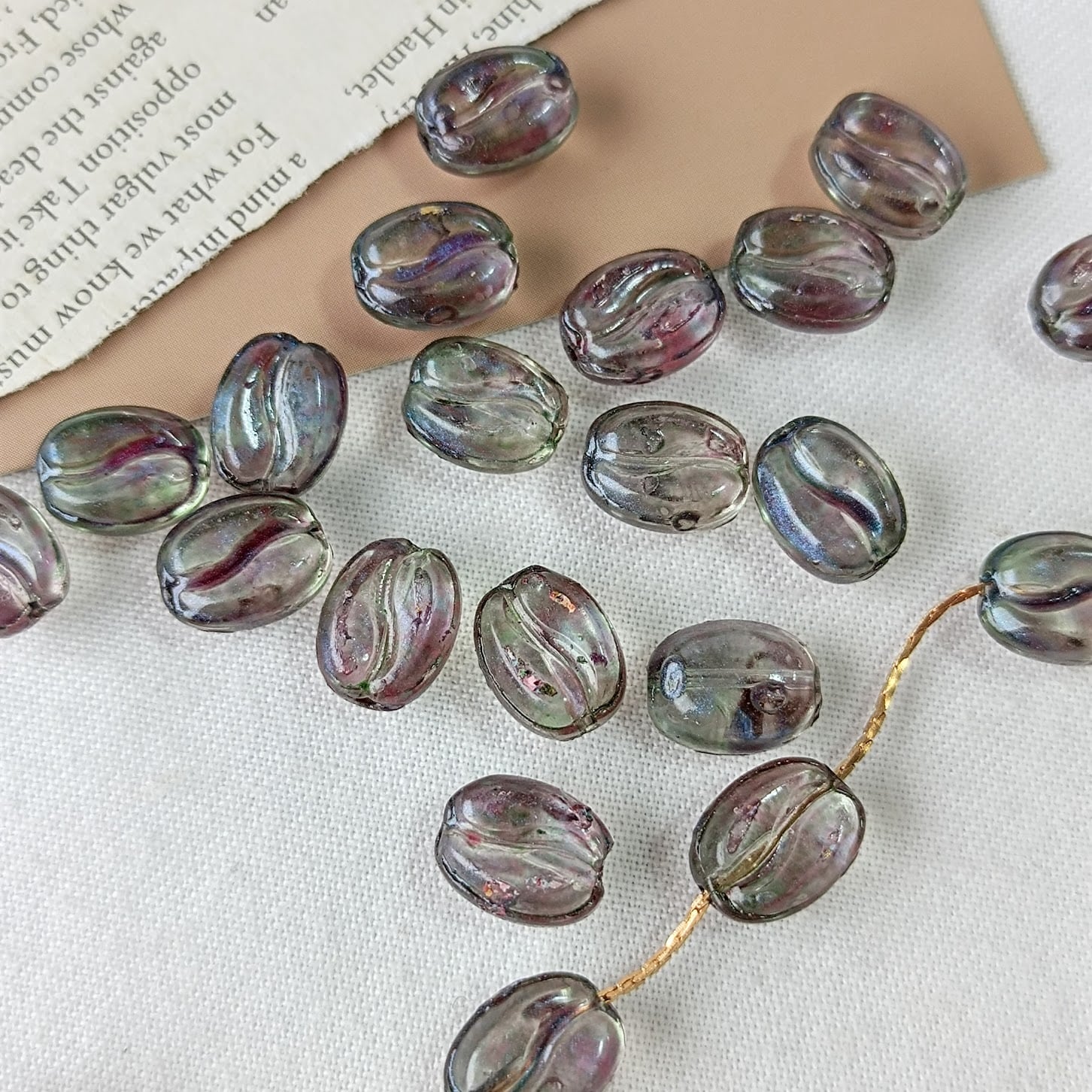 【10個】ガラス コーヒー豆ビーズ 金箔 貫通穴 ガラスビーズ アンティーク調 レトロ アクセサリーパーツ G070