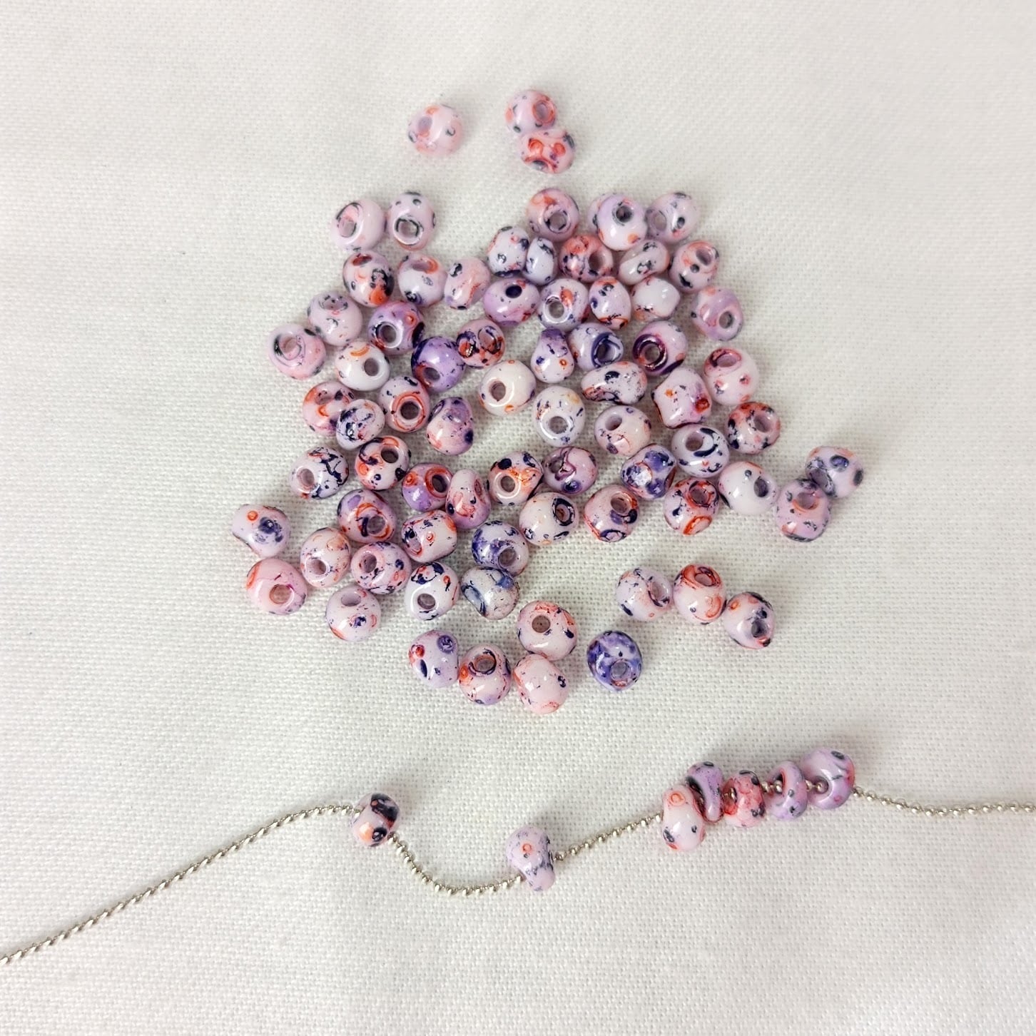 ピカソ風のマーブルカラーのマガ玉ビーズです。