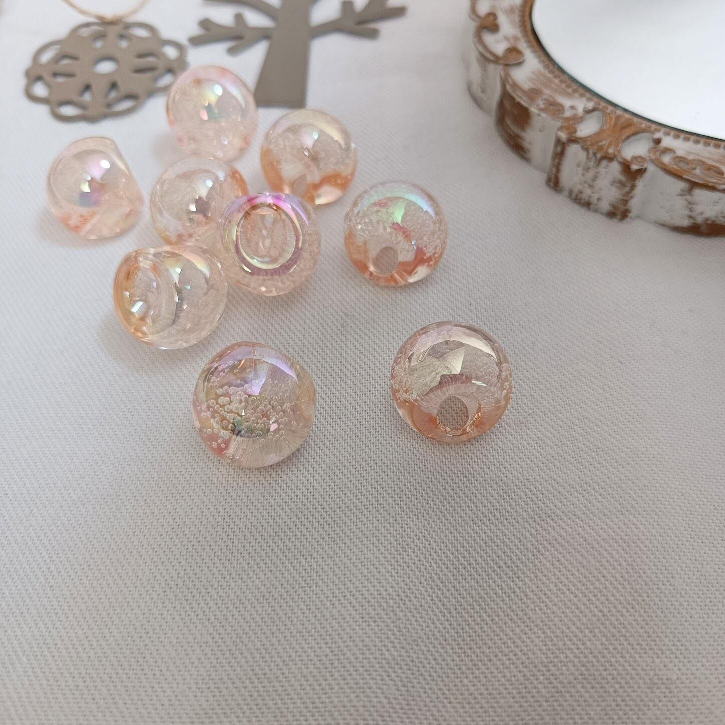 【8個】【16mm】カラー オーロラバブル 鈴丸 人魚姫 アクリルビーズ アクセサリーパーツ ハンドメイド DIY AB139