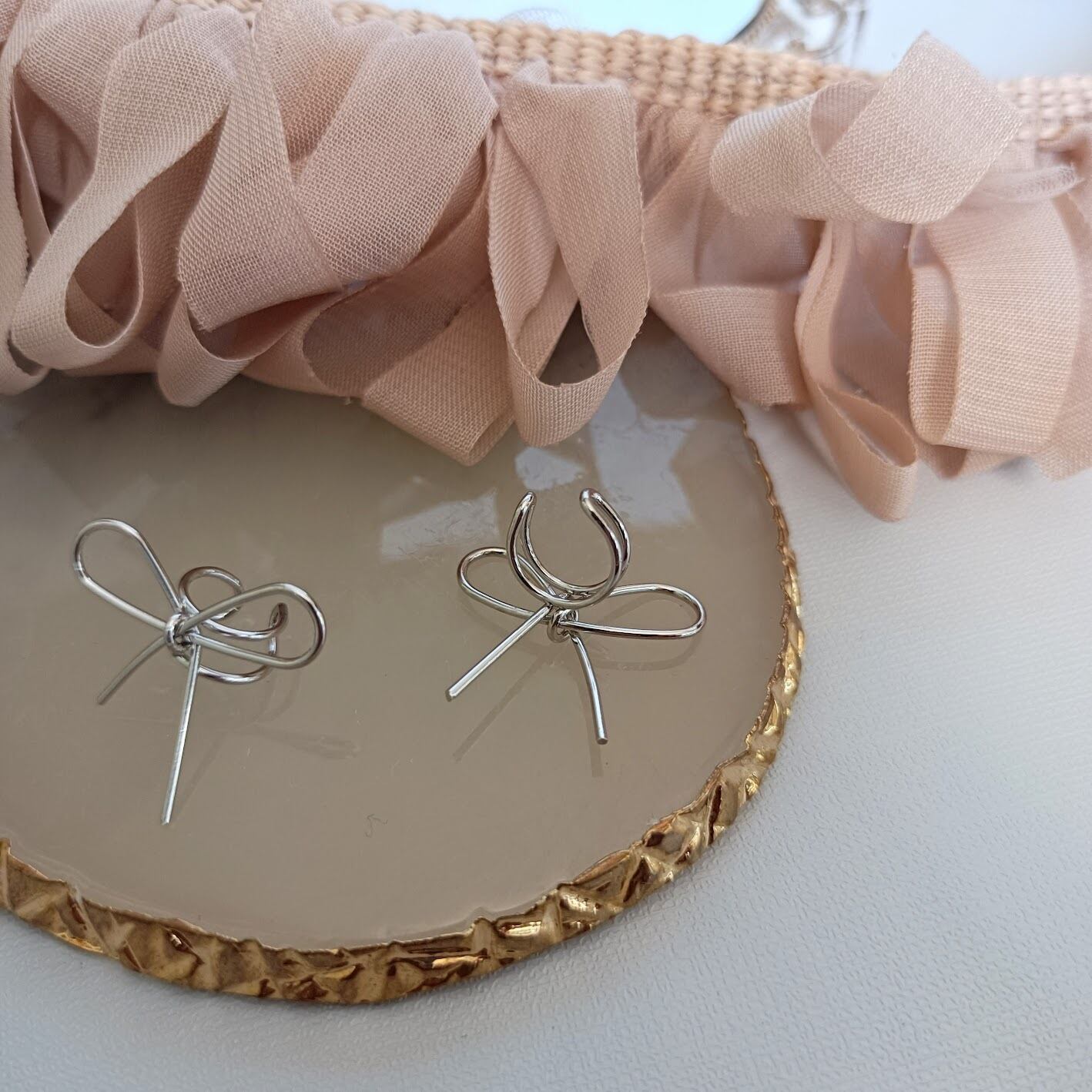【1pcs】プチプラ リボン イヤーカフ 変形 ワイヤー 片耳 大人可愛い イヤリング ニュアンス シンプル 個性