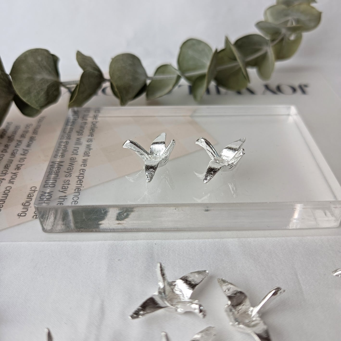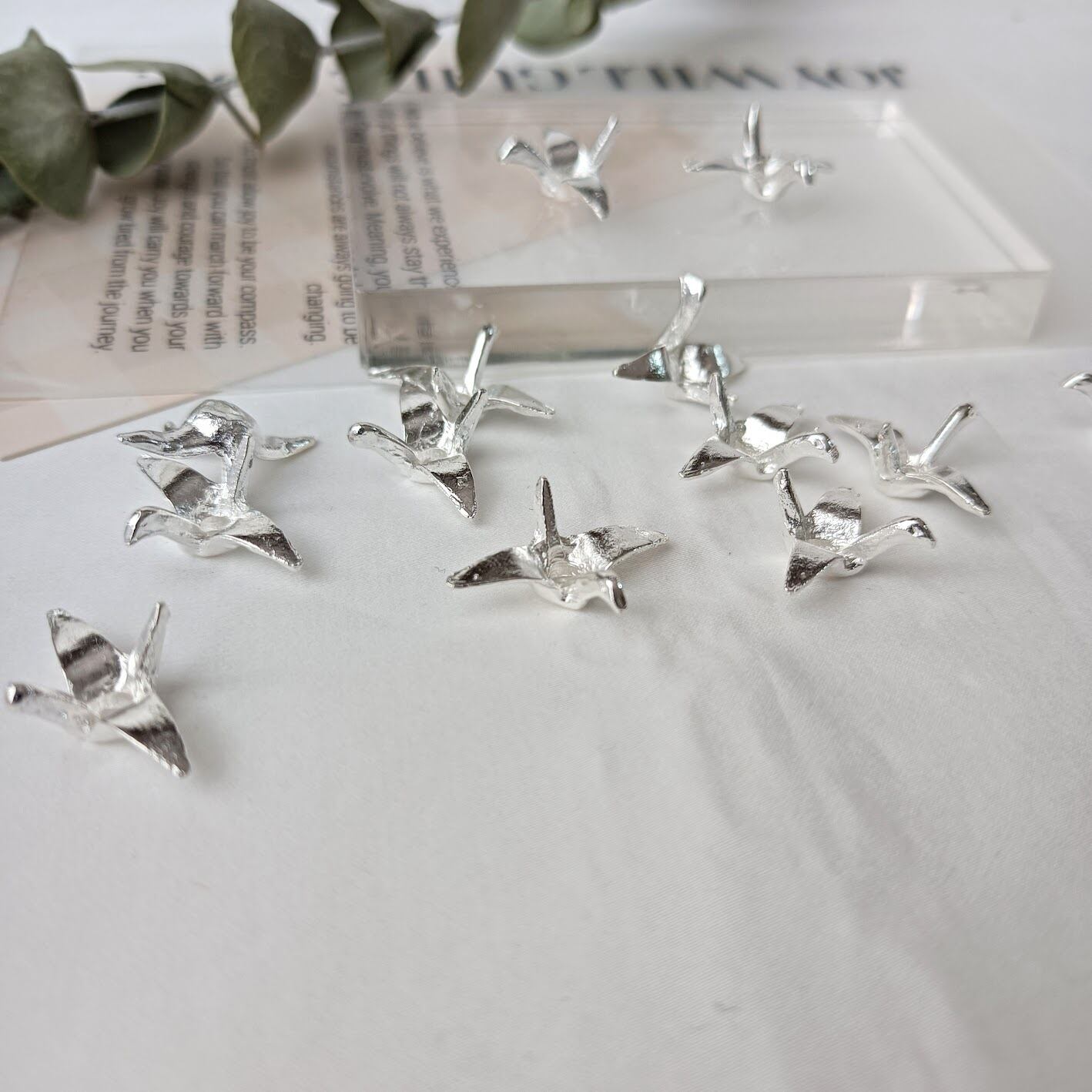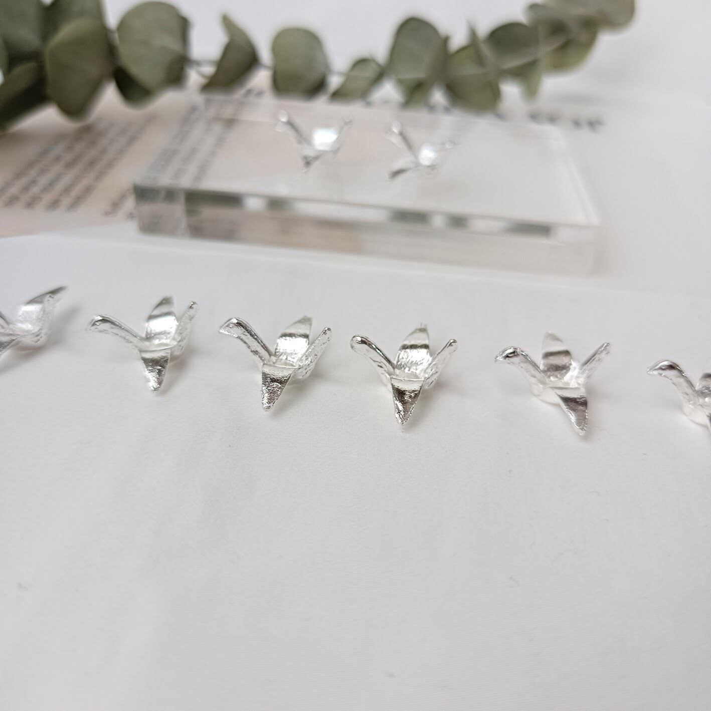 【8個】折り鶴 レトロ 平和 ピース 貫通穴 アンティークシルバー アクセサリーパーツ MP219