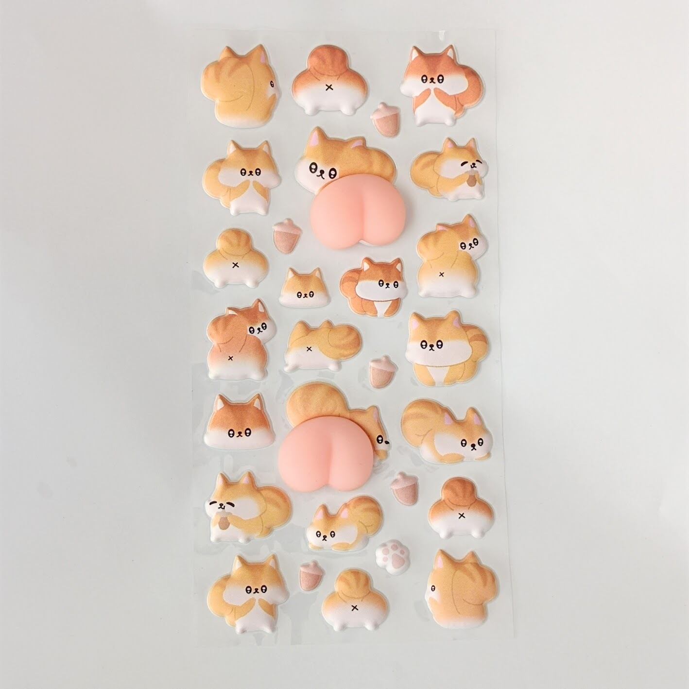 【1枚】おしり ぷにぷに アニマルシリーズ おしりシール マシュマロシール ぷくぷくシール 3Dシール 立体シール ぷっくりステッカー シール手帳 ぷっくり S007