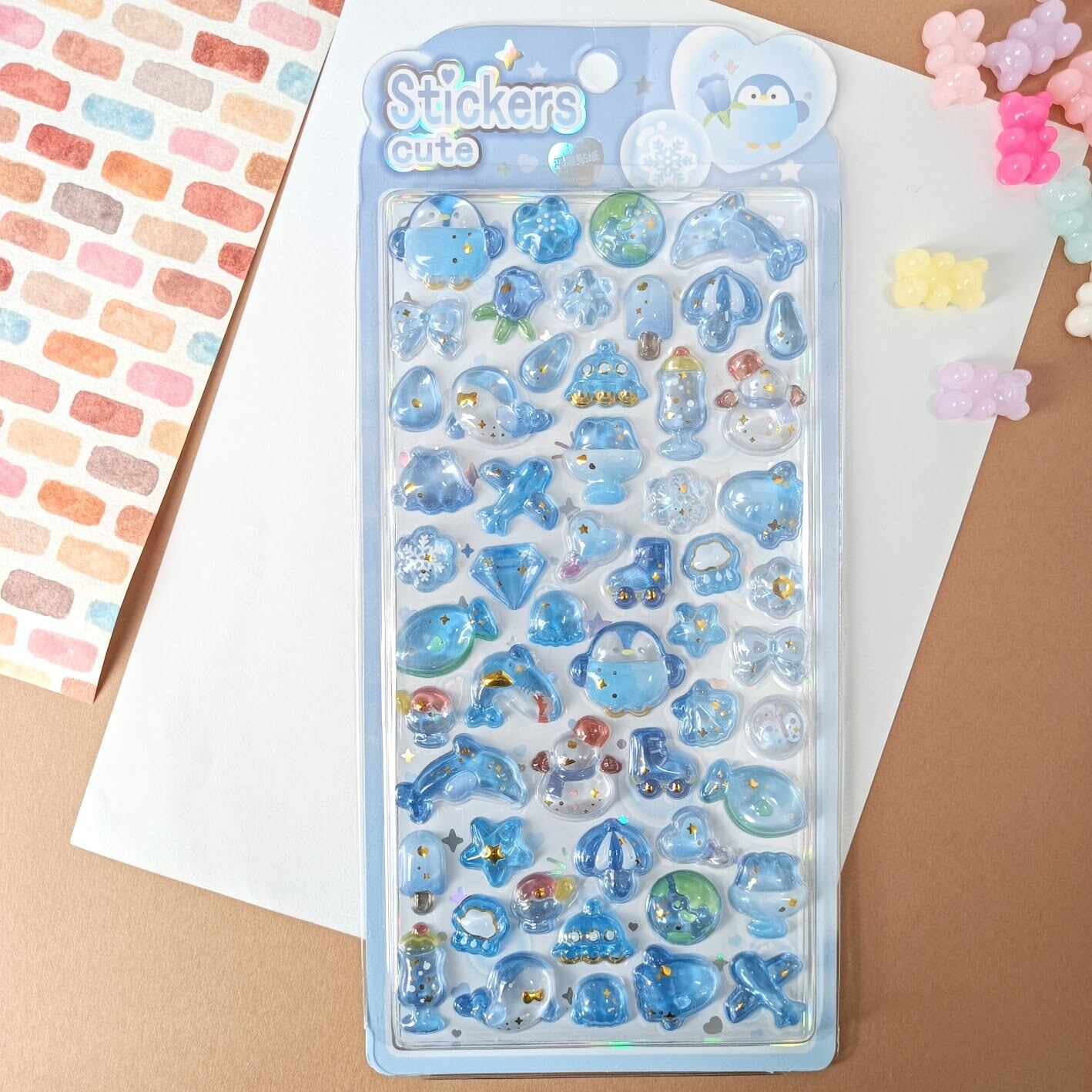 【1枚】3Dステッカー きらいろシリーズ ぷくぷくシール 立体シール キラキラ ちゅるん S010