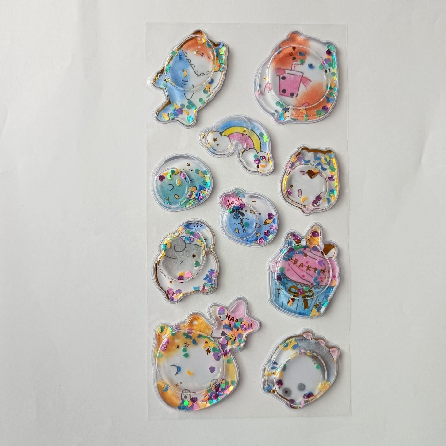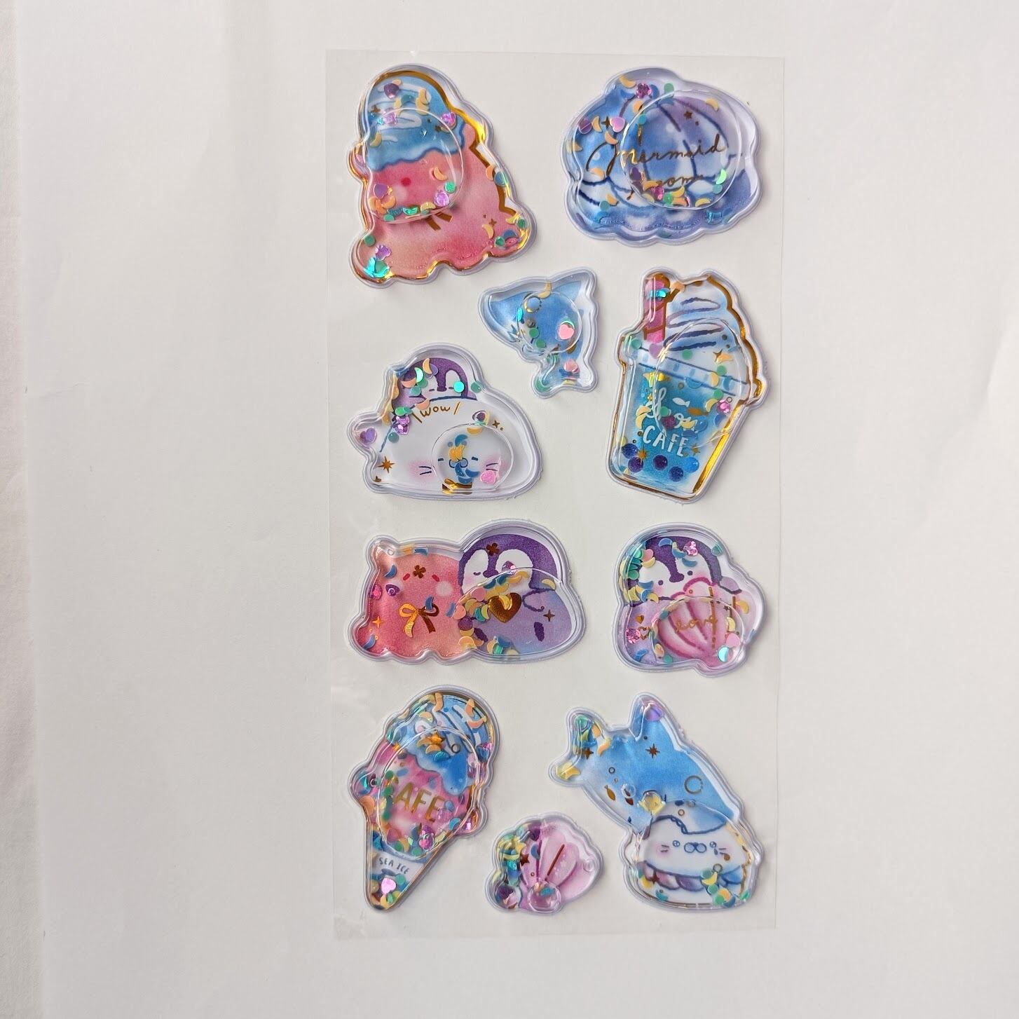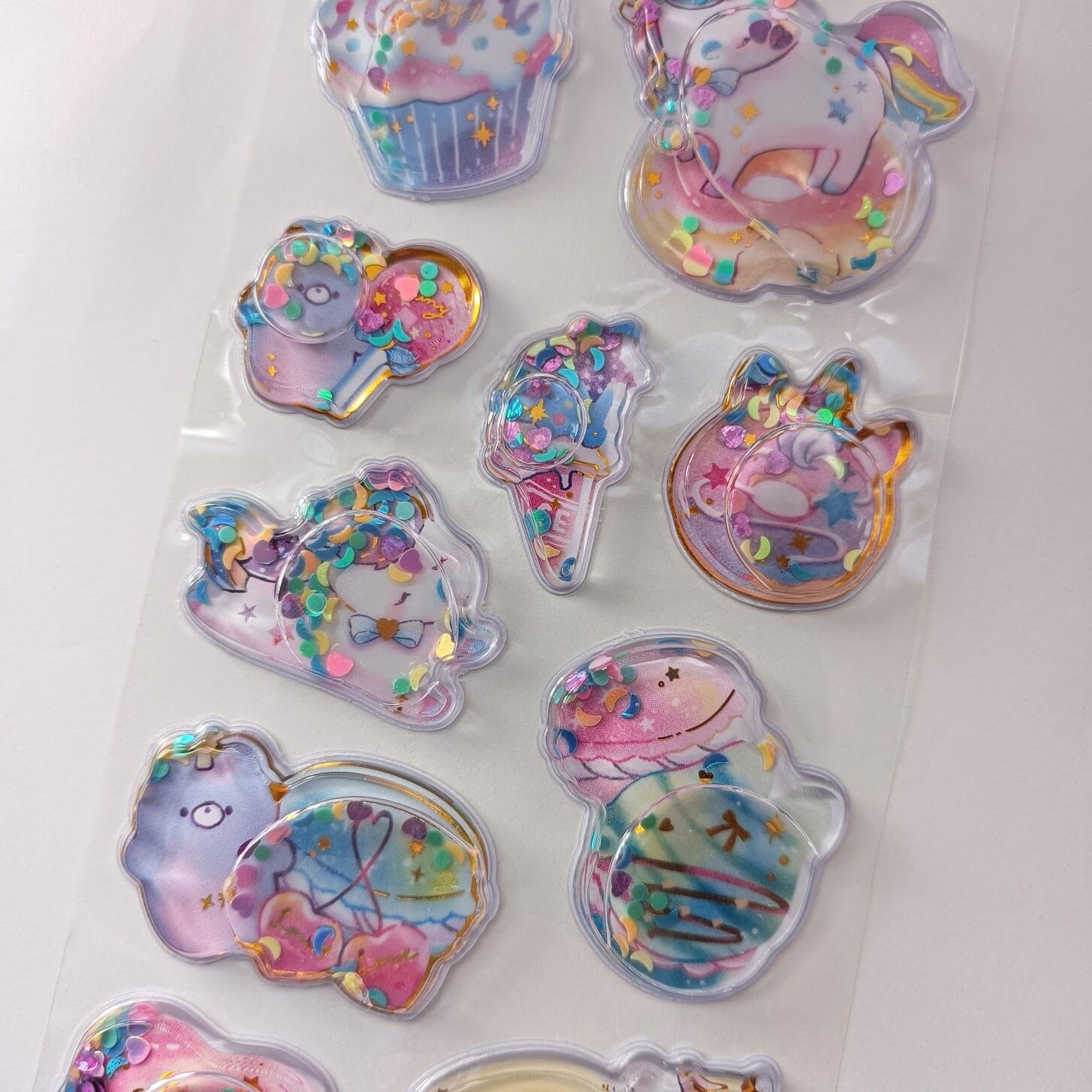 【1枚】水いり ウォーターシール ファンタジーリーズ ゆらゆら キラキラ ぷくぷく 3D 立体シール ぷっくりステッカー シール手帳 S016