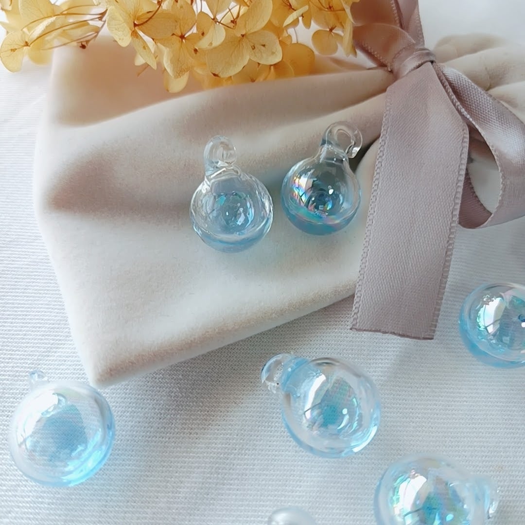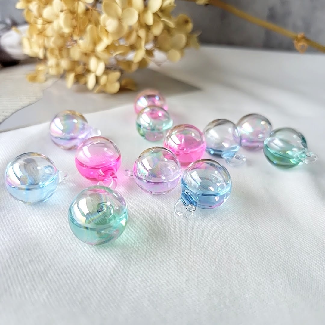 【ロット変更】【16mm】【4個】オリジナル カラー 小ぶり シャボン玉 ガラスチャーム オーロラクリア ガラスドーム アクセサリーパーツ ハンドメイド DIY G028