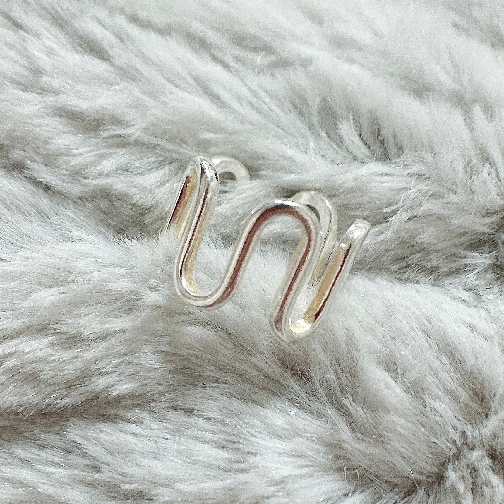 プチプラ シルバー ウエーブ デザイン オープンリング 曲線デザイン アクセサリー シンプル ニュアンス 韓国