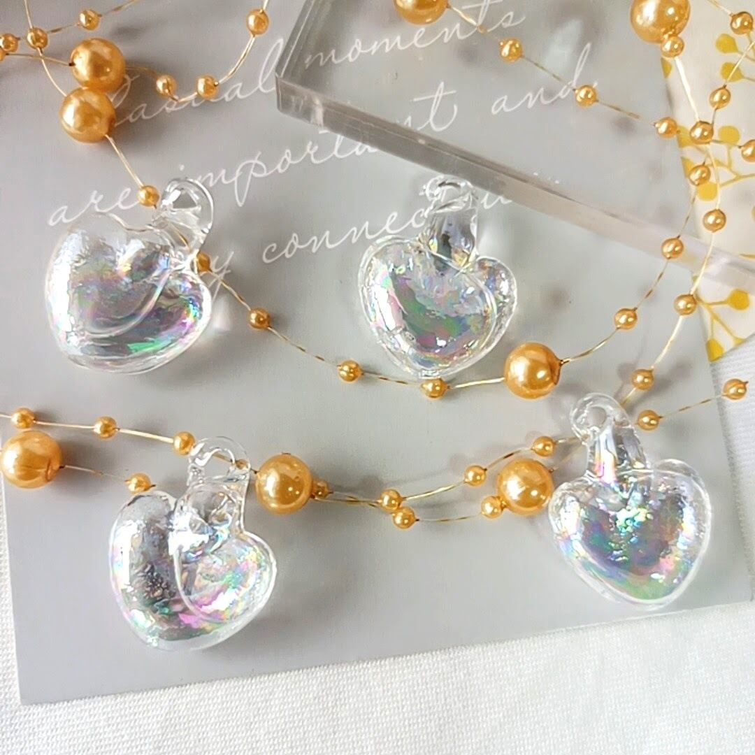 【4個】ハート型 シャボン玉ガラスチャーム オーロラクリア ガラスチャーム アクセサリパーツ ハンドメイド DIY G002