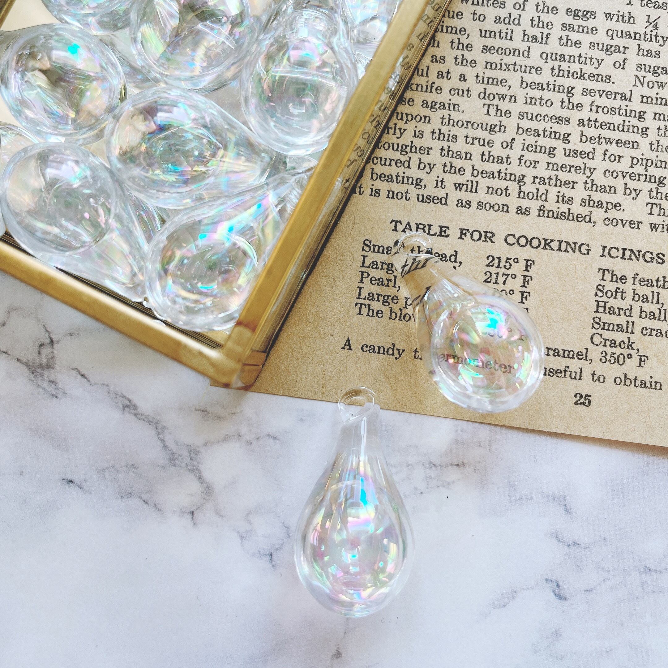 【再入荷】【4個】ドロップ型 しずく型 シャボン玉 ガラスチャーム オーロラクリア ガラスチャーム アクセサリパーツ ハンドメイド DIY