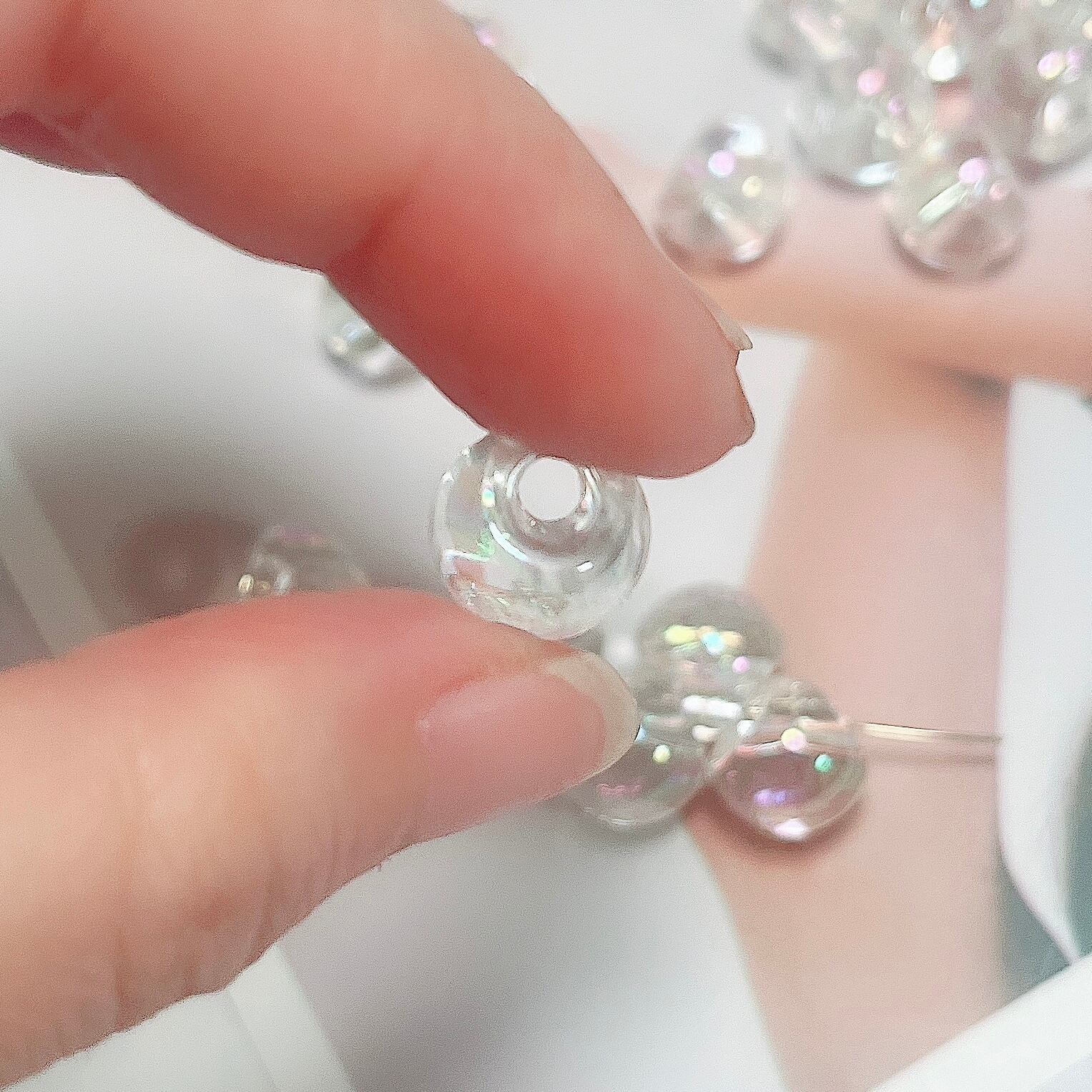 【60個】【12mm】【オーロラクリア】鈴丸 ビーズ ドロップ アクセサリパーツ ハンドメイド DIY