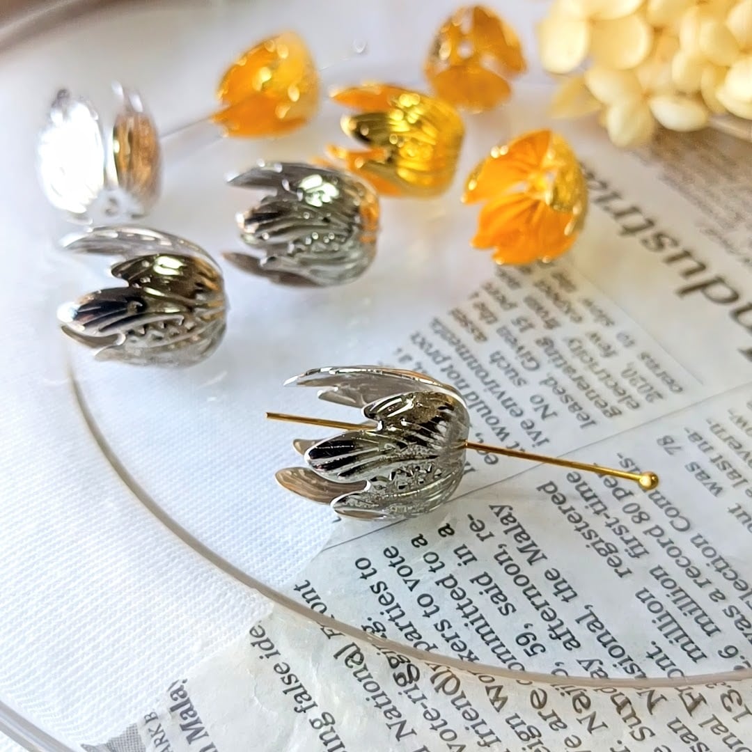少し大きめなつぼみ型のメタルフラワービーズです。
