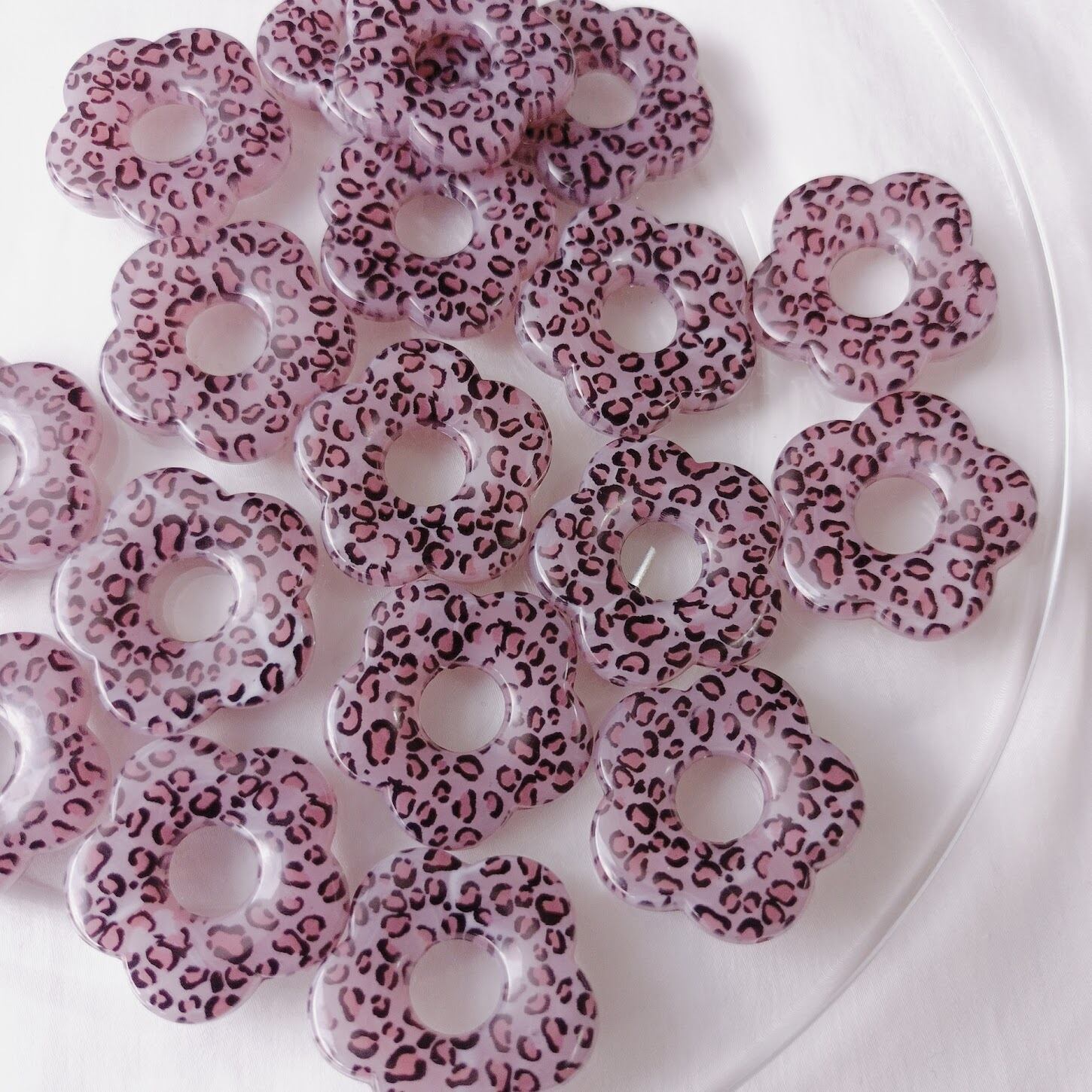 【6個】レオパート柄 フラワー ビーズ トップ穴 アクセサリパーツ ハンドメイド DIY AB053