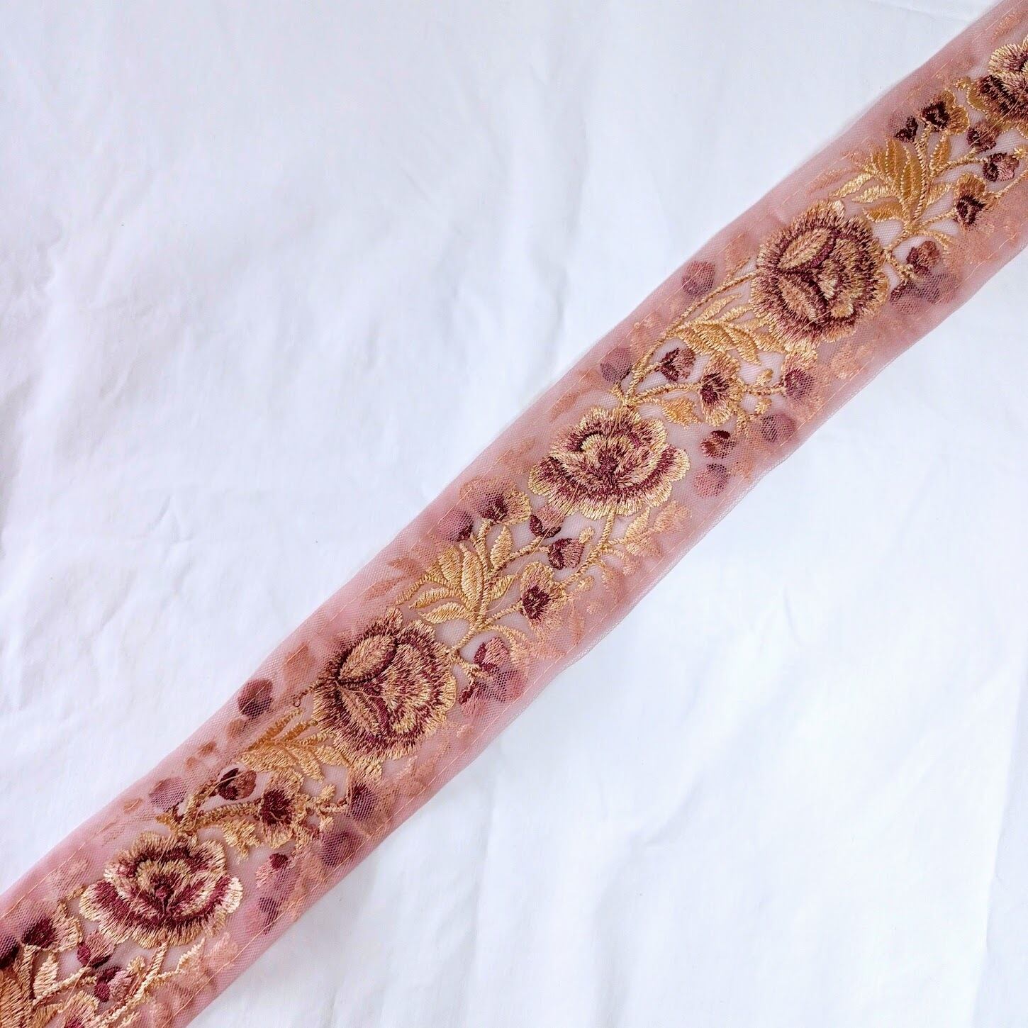 【50cm】【65mm幅】くすみピンク インド刺繍リボン フラワーモチーフ デコレーション アクセサリーパーツ 手芸用品 DIY F014