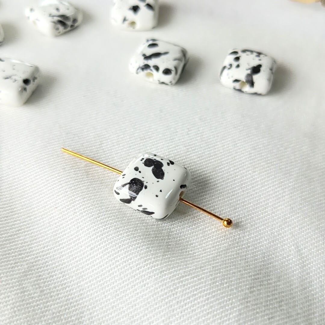 【ロット変更】【6個】牛柄 セラミック ビーズ アニマル柄 貫通穴 スクエア モノトーン アクセサリーパーツ ハンドメイド DIY