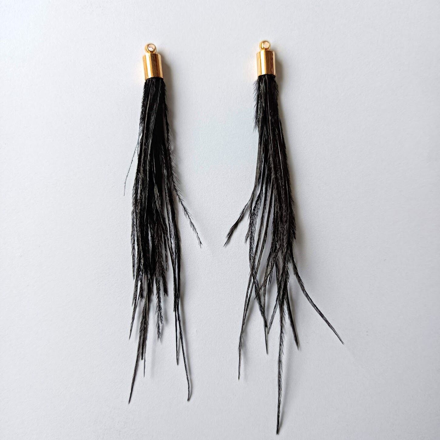 【4個】オーストリッチ フェザー タッセル カン付き ファー チャーム アクセサリーパーツ ハンドメイド DIY
