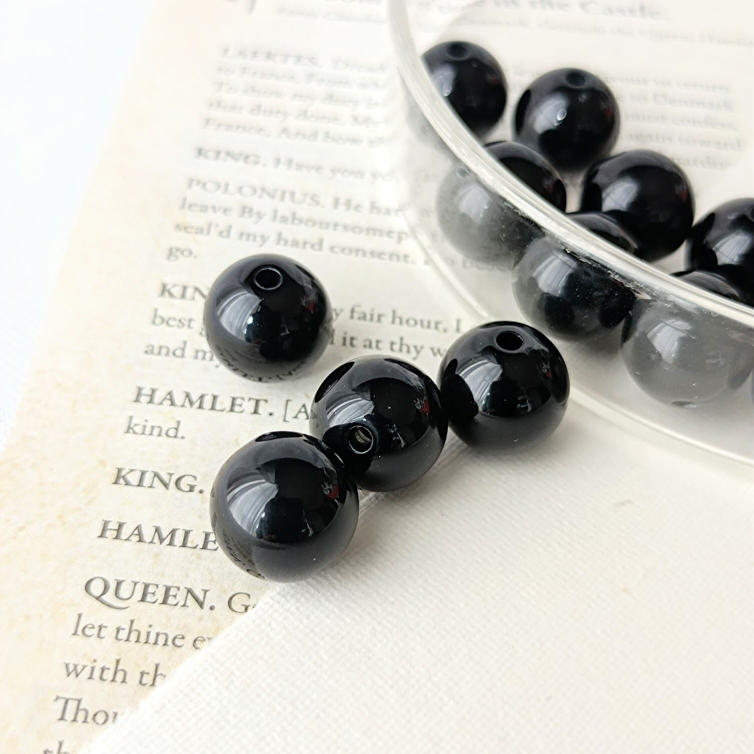 【60個】【12mm】ブラック 丸玉 黒 貫通穴 ラウンド アクリルビーズ 黒玉 アクセサリーパーツ ハンドメイド DIY