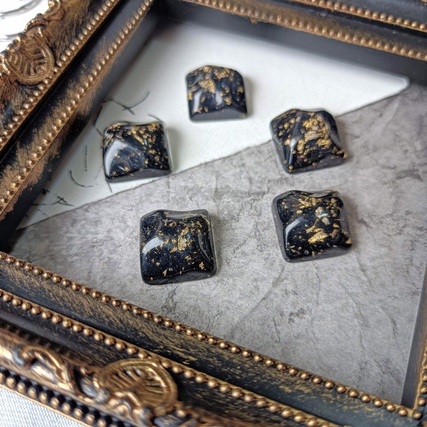【8個】金箔入り 水面加工 ブラック カボション スクエア 変形 貼付けパーツ アクセサリーパーツ ハンドメイド DIY