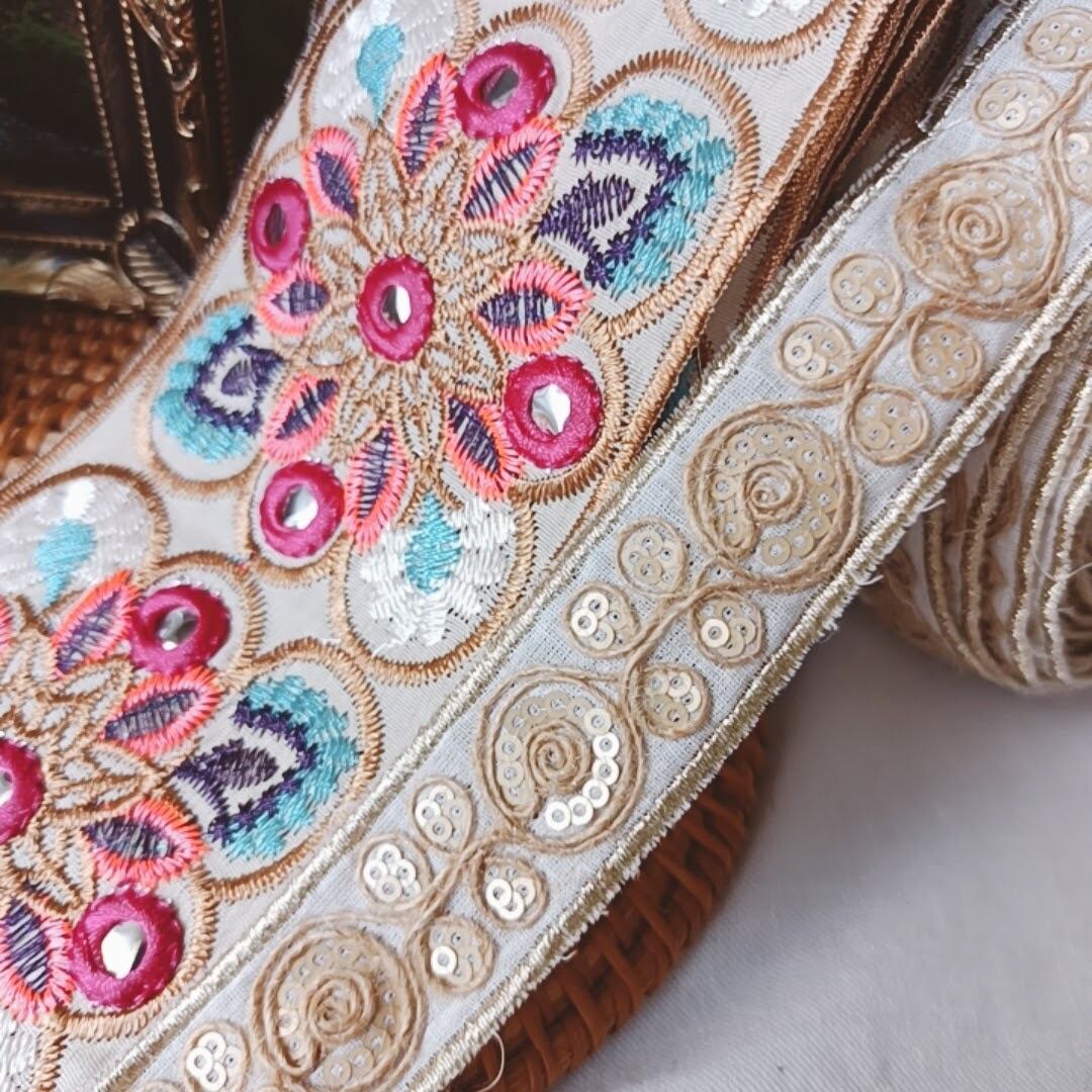 【50cm】【75mm幅】ワイドタイプ 刺繍リボン アジアンテイスト 手芸 ハンドメイド DIY
