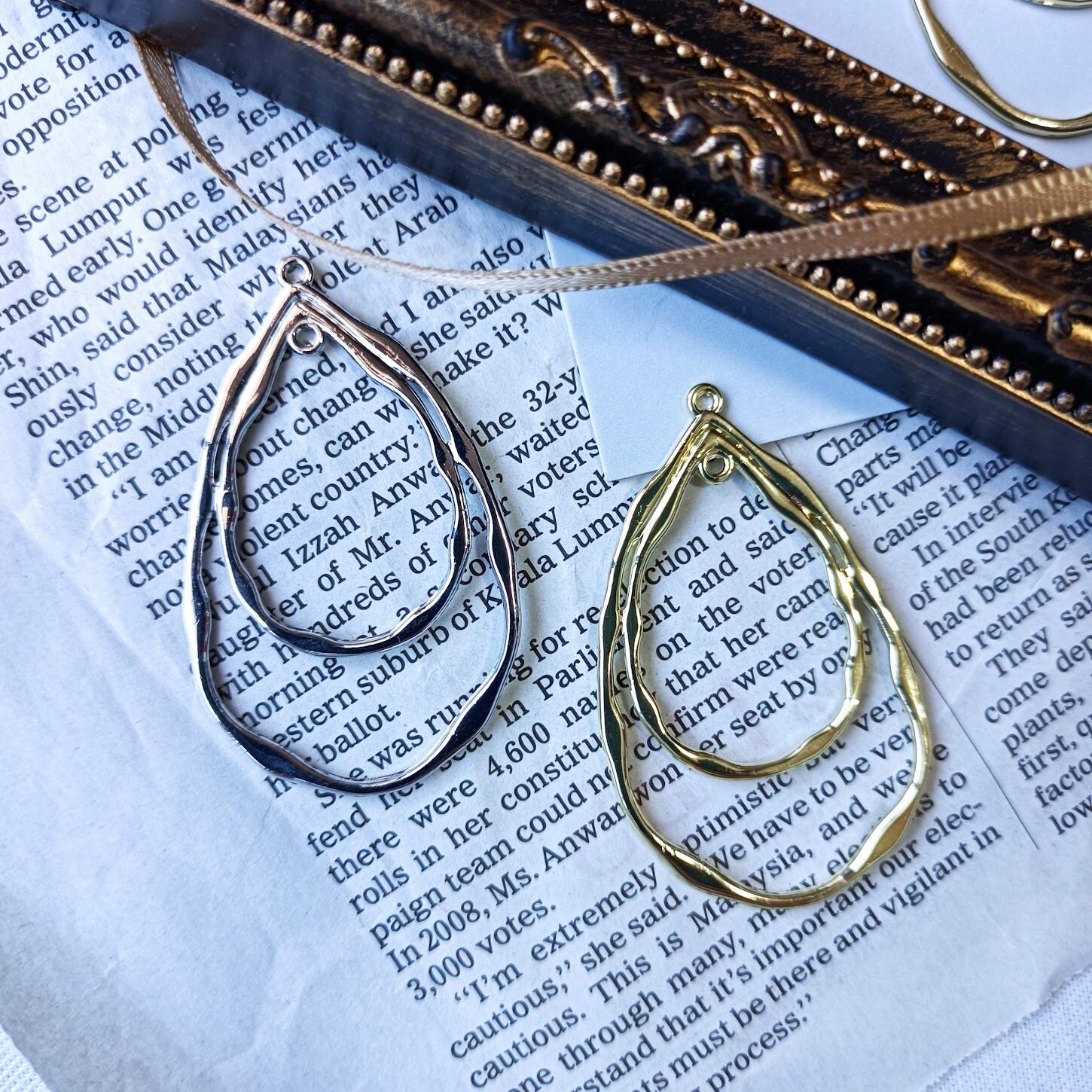 【4個】変形 2連 ドロップ フープ メタル チャーム しずく フレーム アクセサリーパーツ ハンドメイド DIY MP137