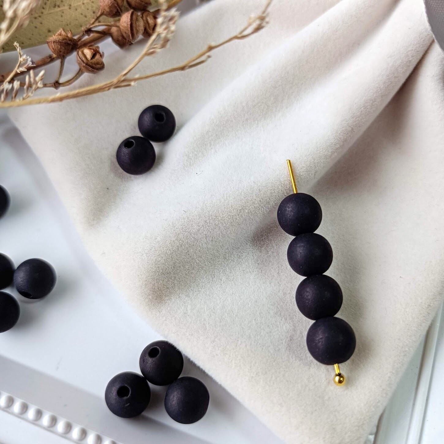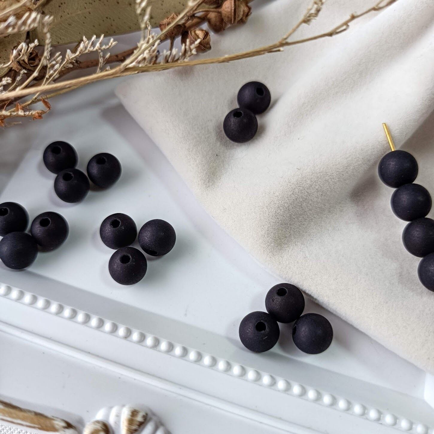 【100個】【8mm】マットブラック 丸玉 艶消し マット加工 黒 貫通穴 ラウンド アクリルビーズ 黒玉 アクセサリーパーツ ハンドメイド DIY