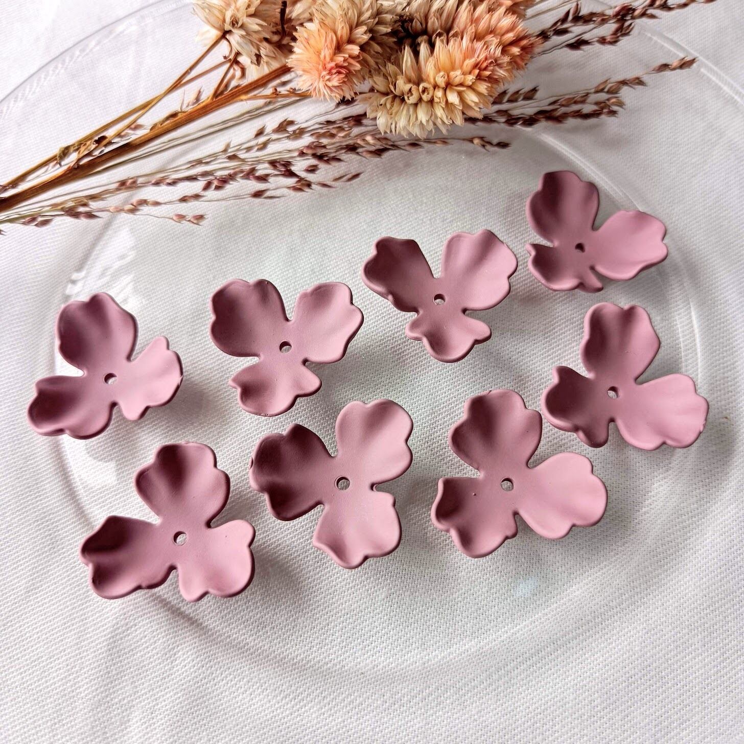 【6個】小さめサイズ 3弁フラワー ゴムコーディング オーロラ マットカラー センターホール アクセサリーパーツ ハンドメイド DIY
