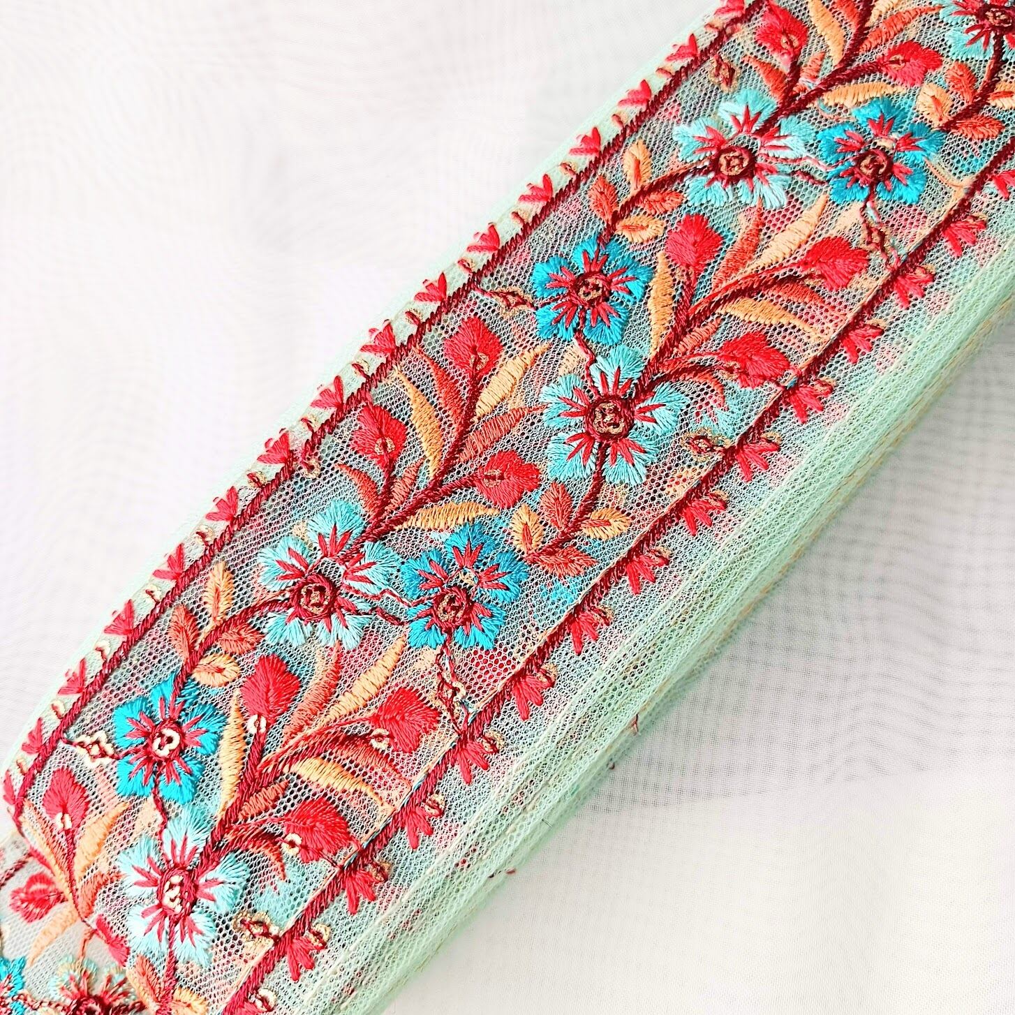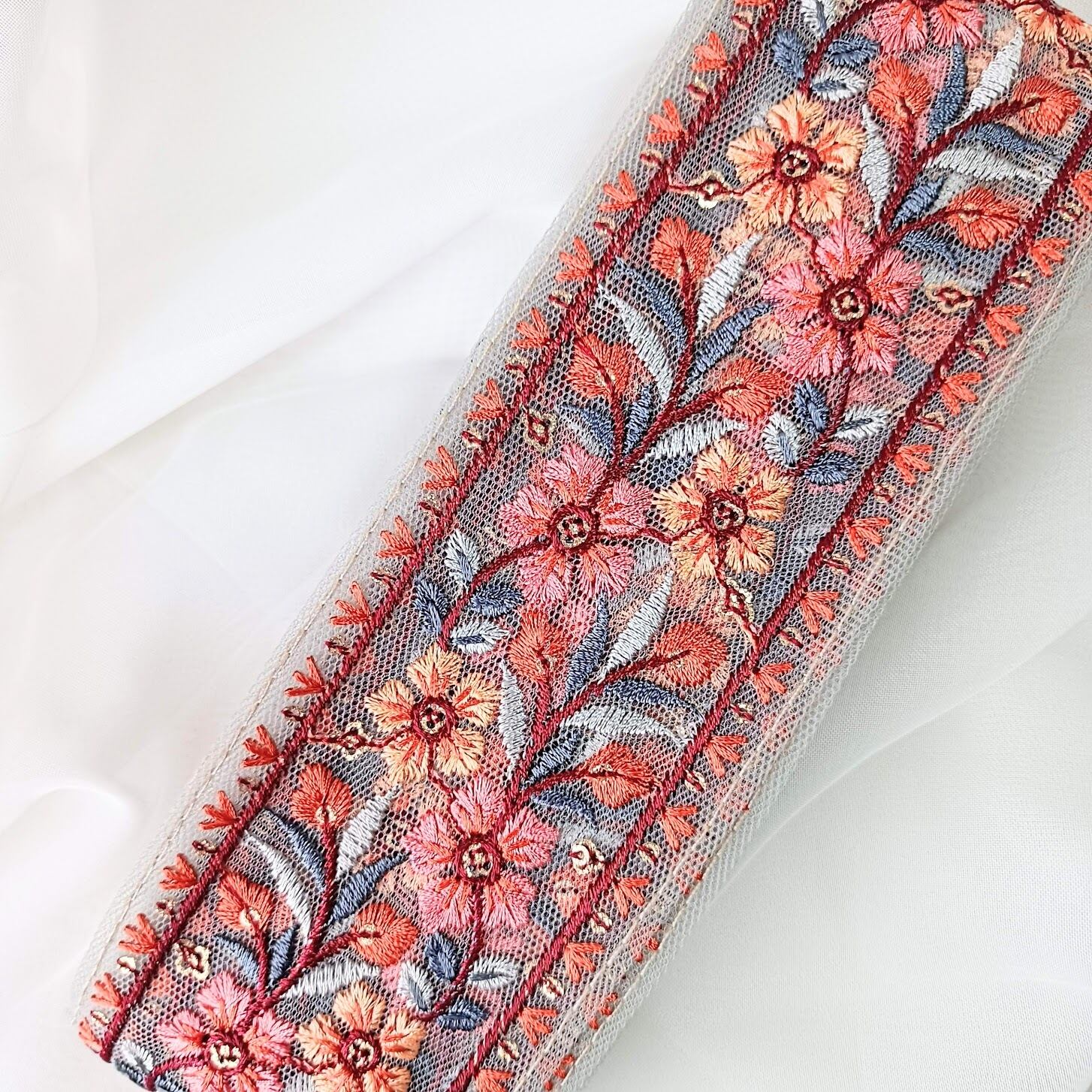 【50cm】【65mm幅】インド刺繍リボン フラワー 花柄 淡い色 レース ハンドメイド DIY R002