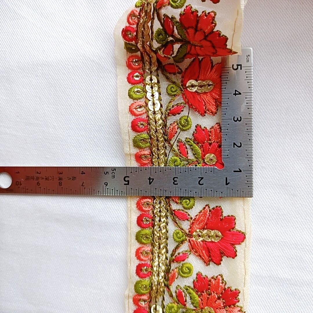 【50cm】【50mm幅】インド刺繍リボン フラワー 花柄 スパンコール レースリボン 手芸 ハンドメイド DIY R004