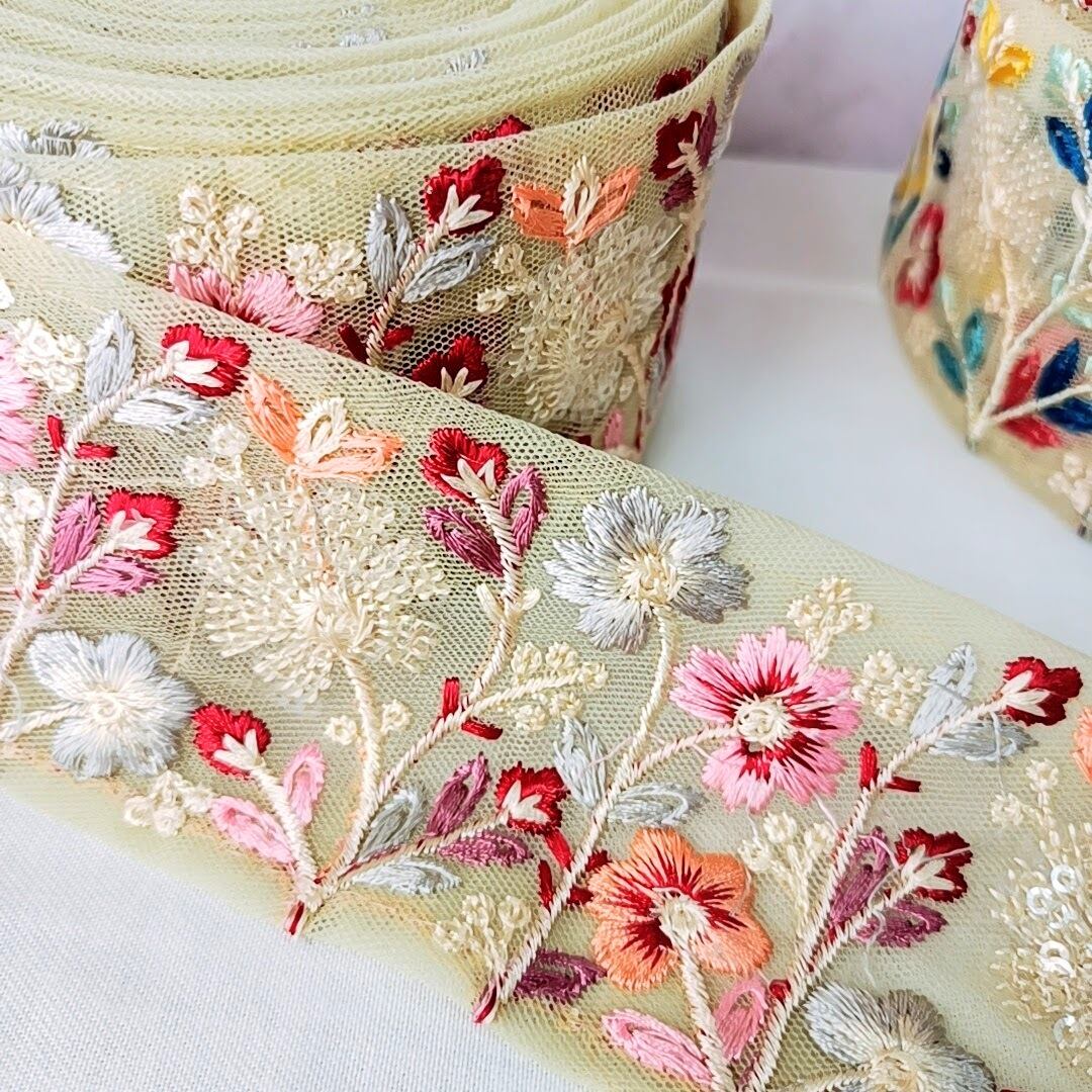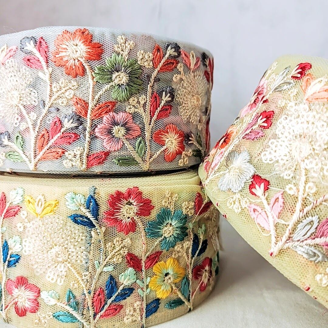 【50cm】【幅60mm】ワイドタイプ 刺繍リボン アジアンテイスト フラワーモチーフ 手芸 ハンドメイド アクセサリーパーツ DIY R010