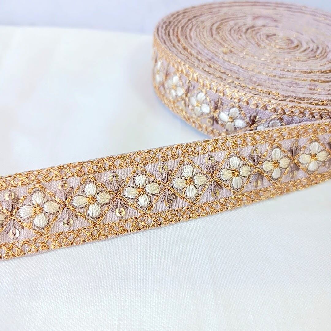 ※インド刺繍リボンは歪み、糸の未処理、継ぎ目、刺繍ミス等多々あります。予めご承知下さいませ。