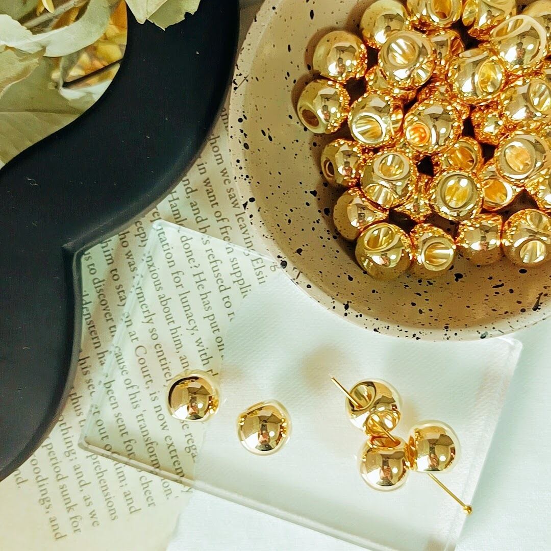 【24個】【12mm】【ゴールド】 鈴丸 アクリルビーズ ドロップ フェイクメタル メタルビーズ アクセサリパーツ ハンドメイド DIY AB031-1