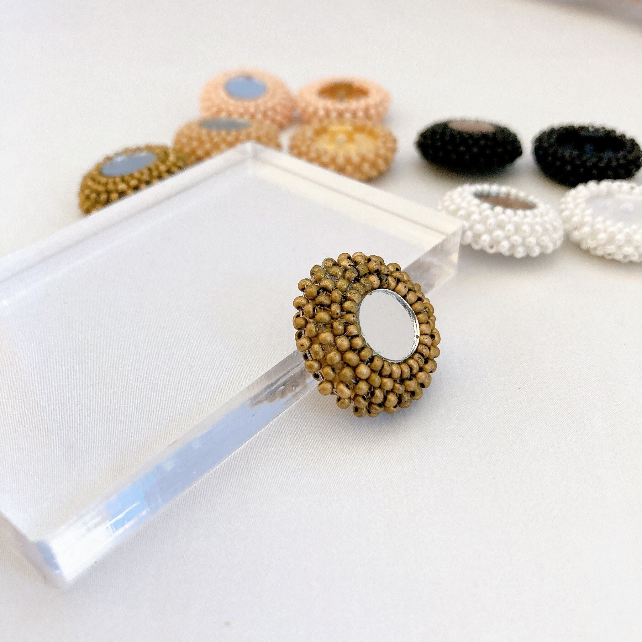 【2個】ミラーボタン ビーズ刺繍 ラウンド アンティーク調 レトロ カボション アクセサリーパーツ ハンドメイド DIY C006