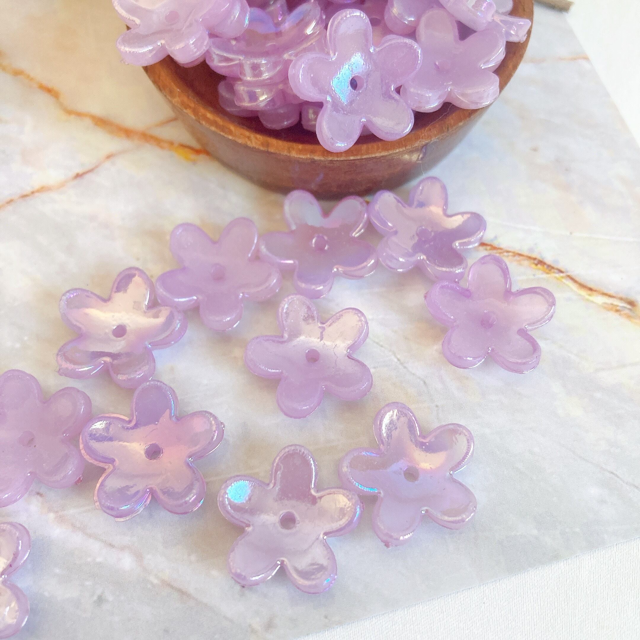 【30pcs】オーロラコーティング 5弁 フラワー アクリル ビーズ センターホール アクセサリーパーツ ハンドメイド DIY AB033