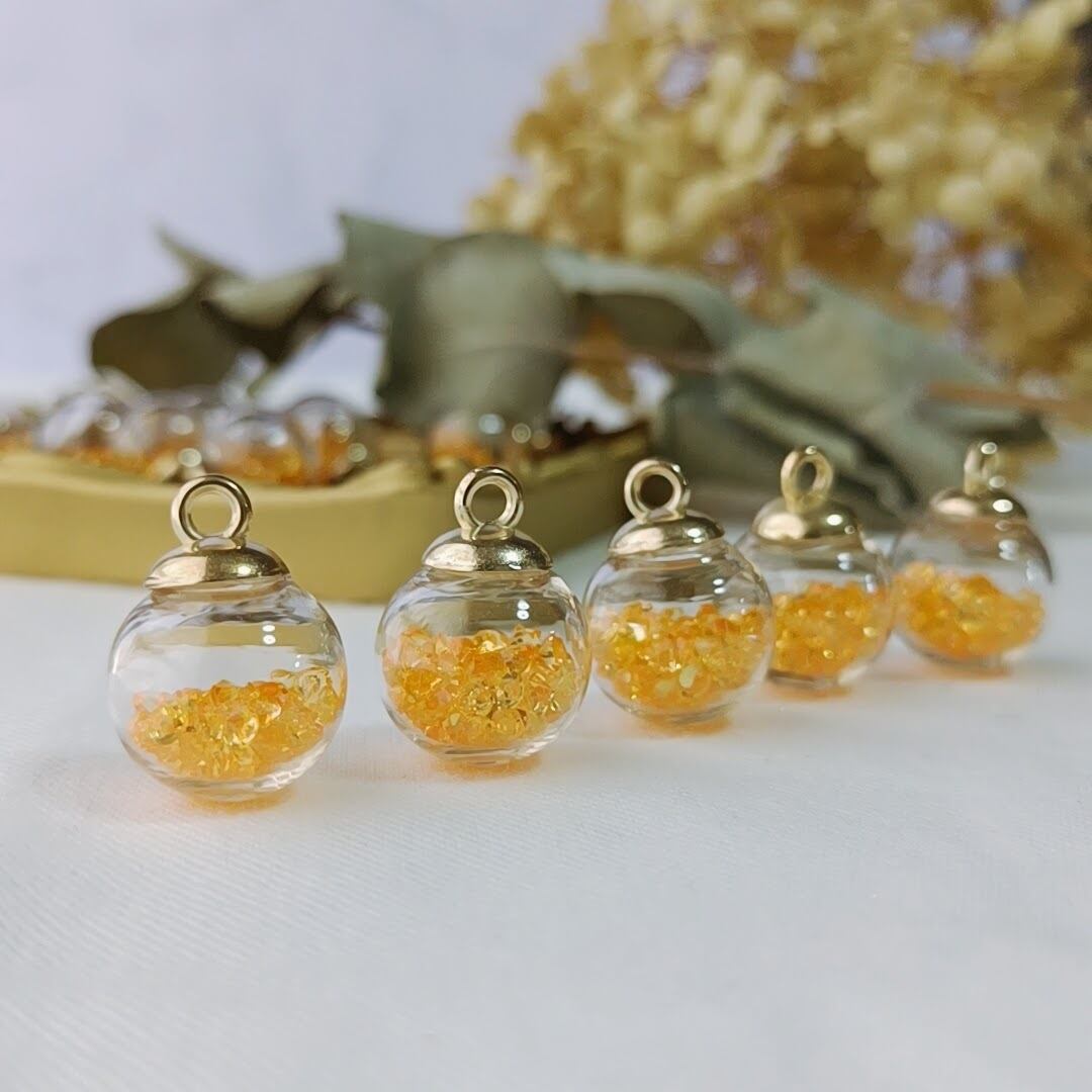【本気セール】【10個×2】【ゴールド】【16mm】 クリスタルストーン入り ガラスドーム ガラスチャーム ガラスボール アクセサリパーツ ハンドメイド DIY G012-1