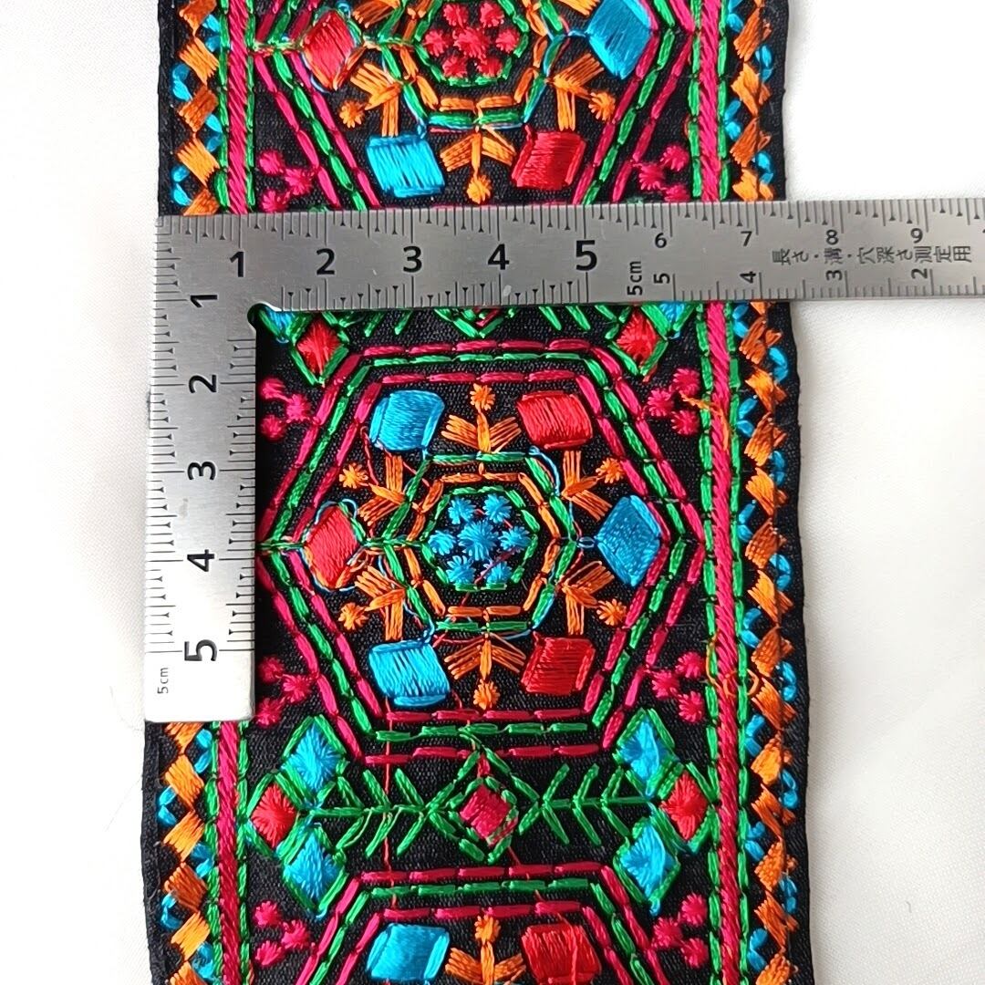 【50cm】【75mm幅】ワイトタイプ インド刺繍リボン ブラック 大ぶり アジアンテイスト スパンコール 手芸 アクセサリーパーツ ハンドメイド DIY R023