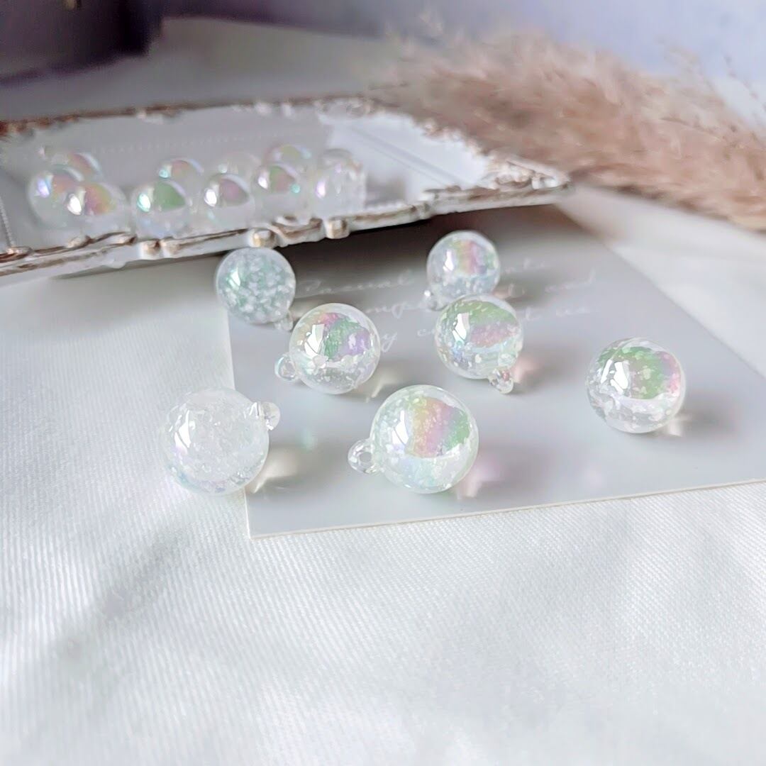 【6個】【16mm】オーロラクリア スノードームチャーム 雪玉 アクリル カン付き アクセサリーパーツ ハンドメイド DIY AB036