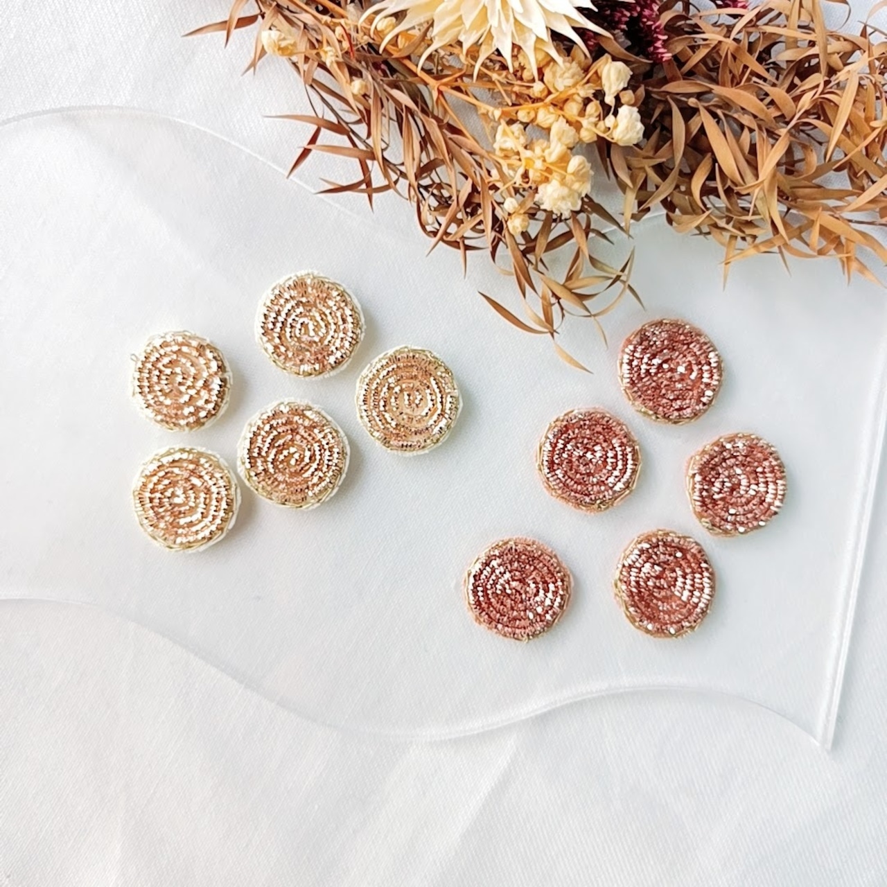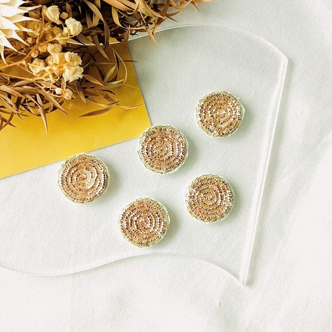 【6個】ビーズ刺繍 カボション バックフラット ゴールド 小ぶり 貼付けパーツ 縫いつけ アクセサリーパーツ ハンドメイド DIY C011