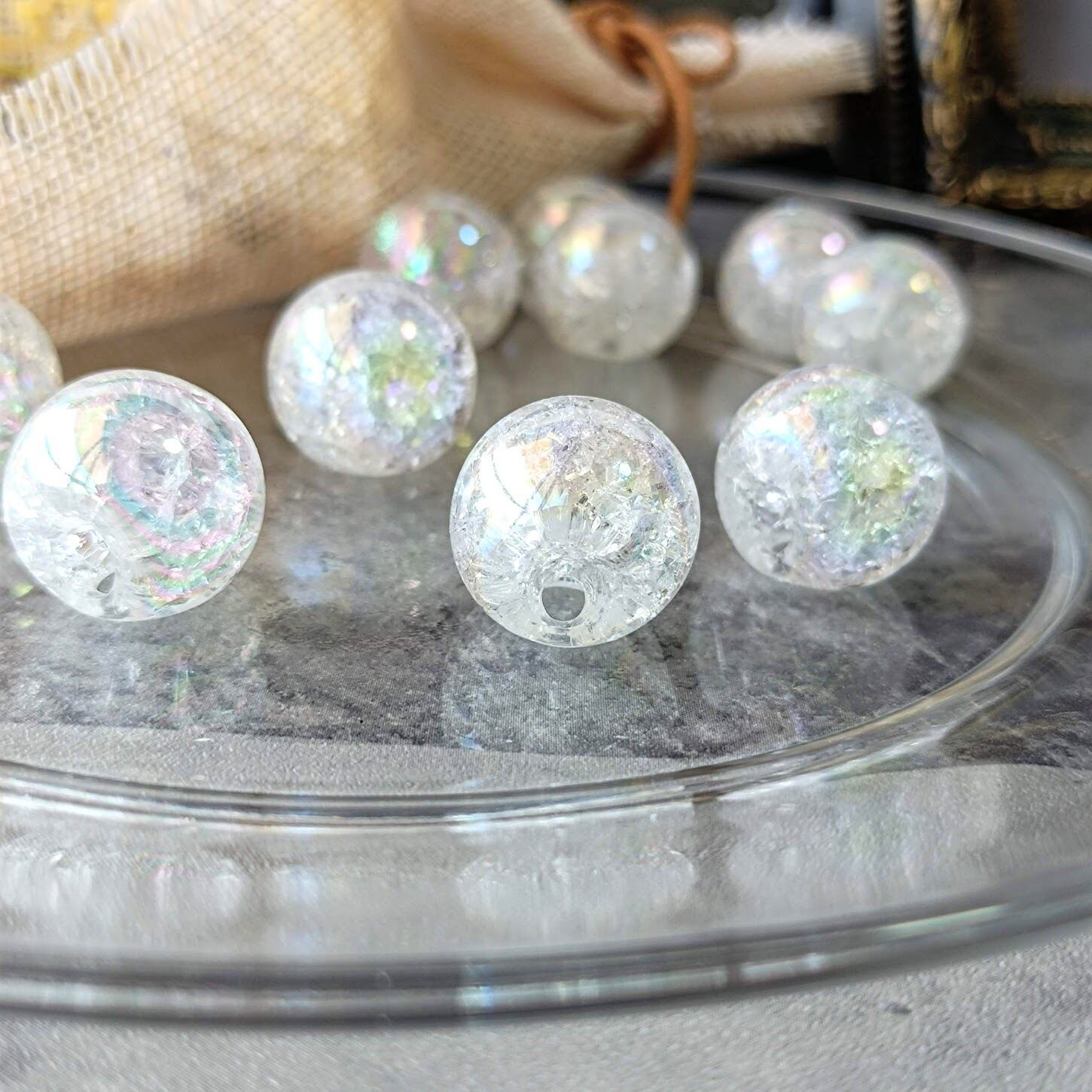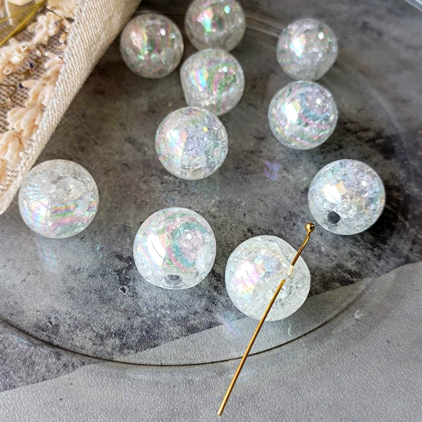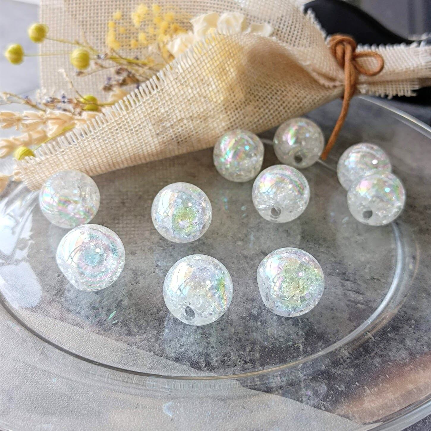 【8個】【16mm】【オーロラクリア】クラック加工 鈴丸 人魚姫 アクリルビーズ アクセサリーパーツ ハンドメイド DIY AB043