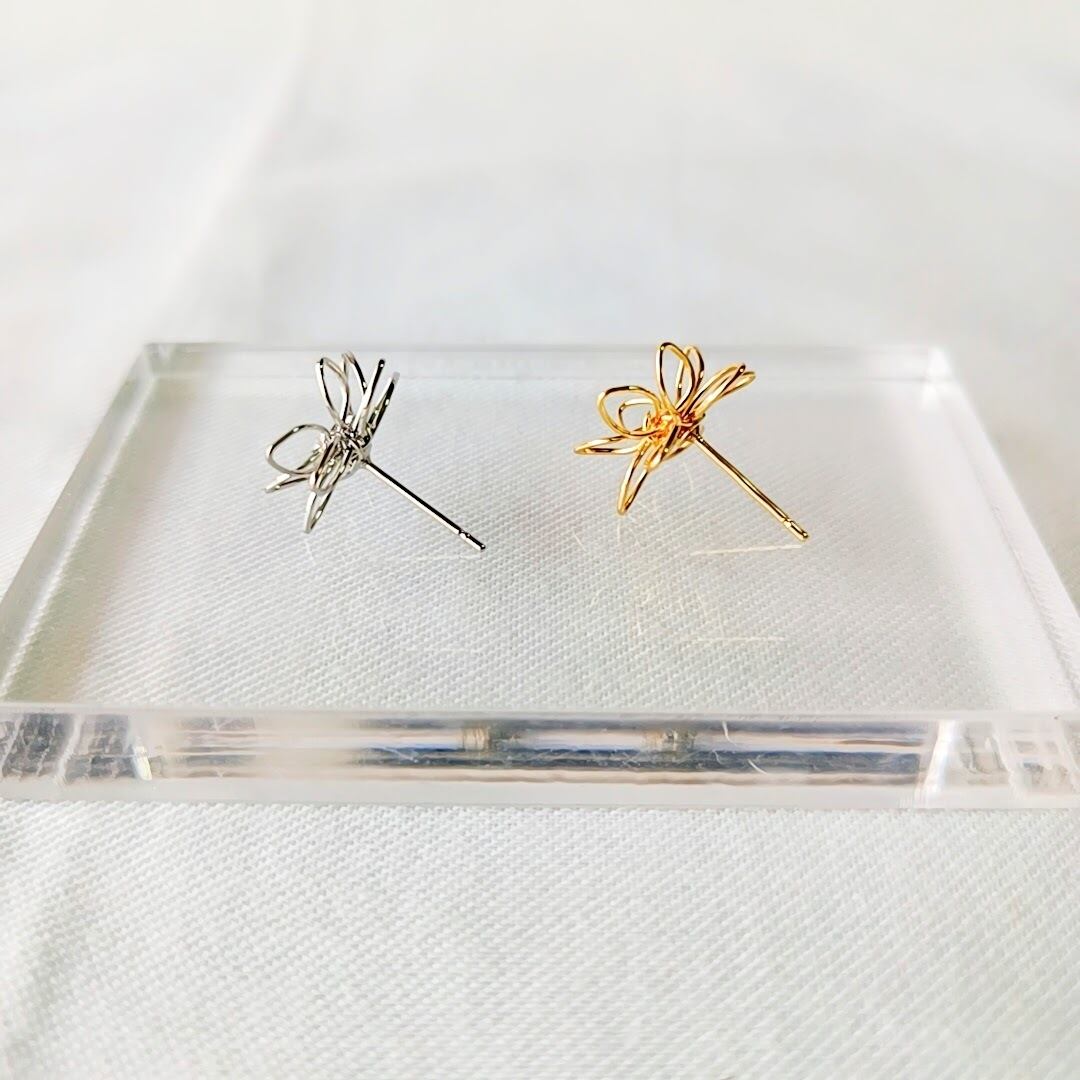 【4個】【MP015】ピアス ワイヤー フラワー 5弁 小ぶり フレーム ワイヤーアート アクセサリーパーツ ハンドメイド DIY