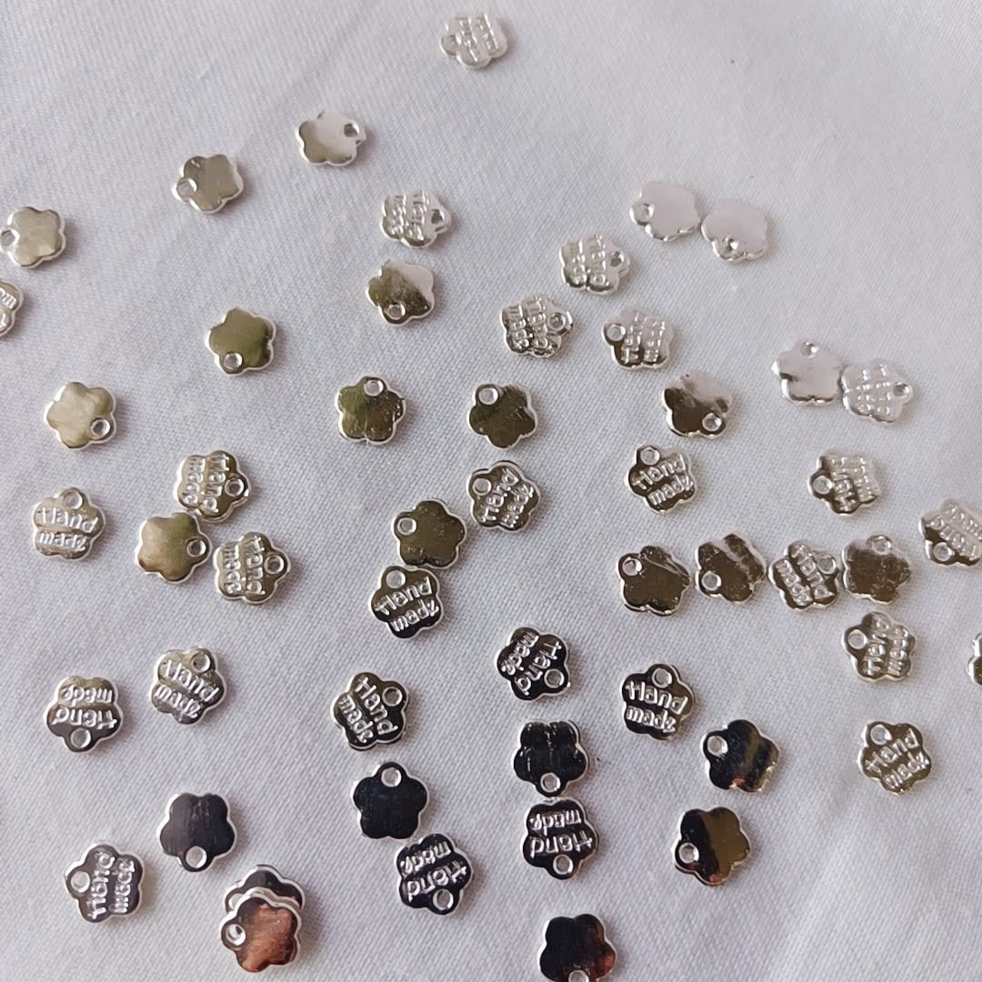 【30個】【シルバー】フラワー ハンドメイドタグ メタルプレート 小ぶり アクセサリーパーツ ハンドメイド DIY