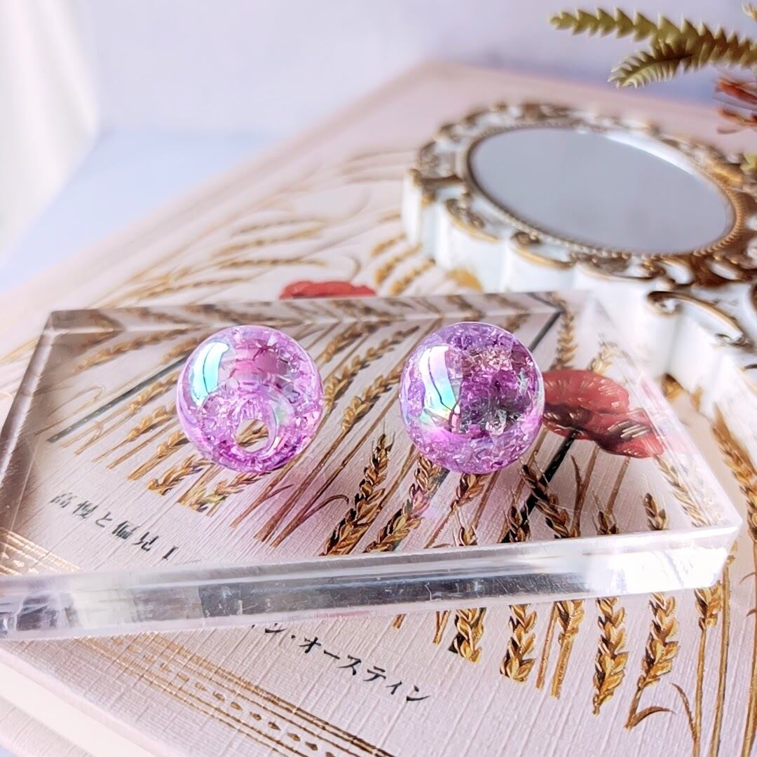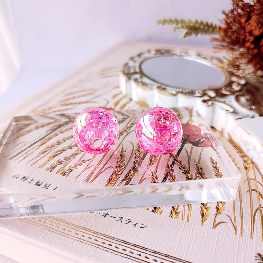 【8個】【16mm】カラー オーロラクラック 鈴丸 クラック加工 アクリルビーズ アクセサリーパーツ ハンドメイド DIY AB060