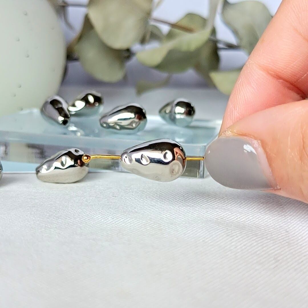 【20個】CCB ドロップビーズ ぼこぼこ ヴィンテージ レトロ ハンマー打ち 貫通穴 丸玉 アクセサリパーツ ハンドメイド DIY