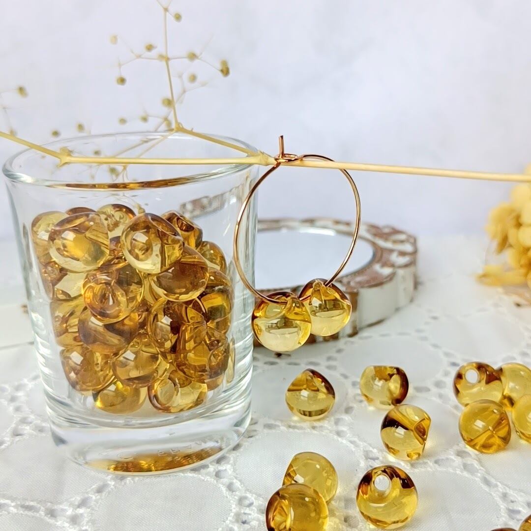【80個】【マスタード】10mm 鈴丸 ビーズ クリア アースカラー ドロップ アクセサリパーツ ハンドメイド DIY AB002-9