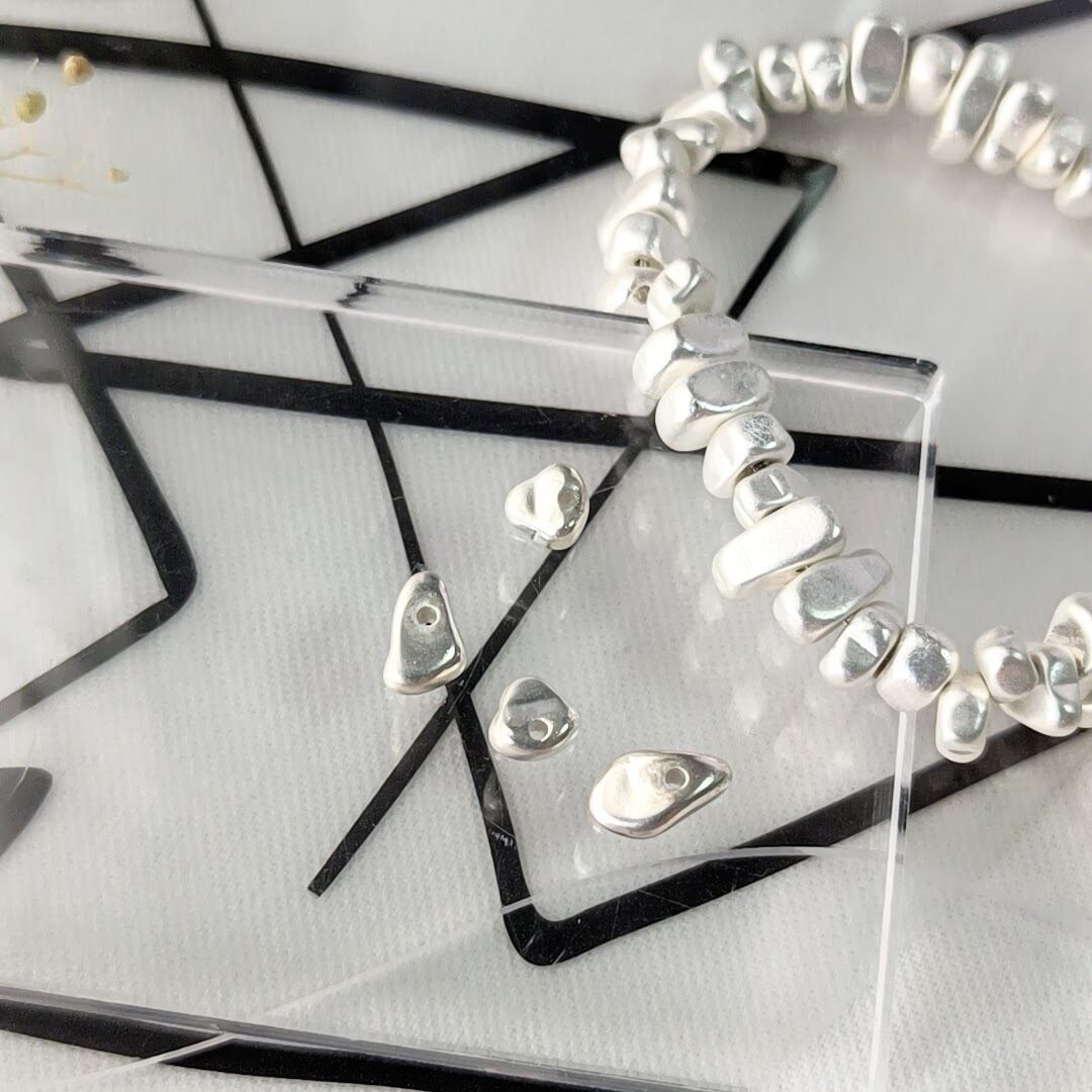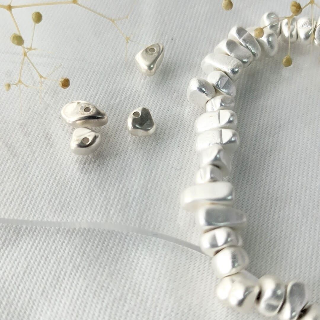 【30個】【マットシルバー】 さざれビーズ 不規則 スペーサービーズ 貫通穴 パワーストーン アクセサリーパーツ ハンドメイド DIY