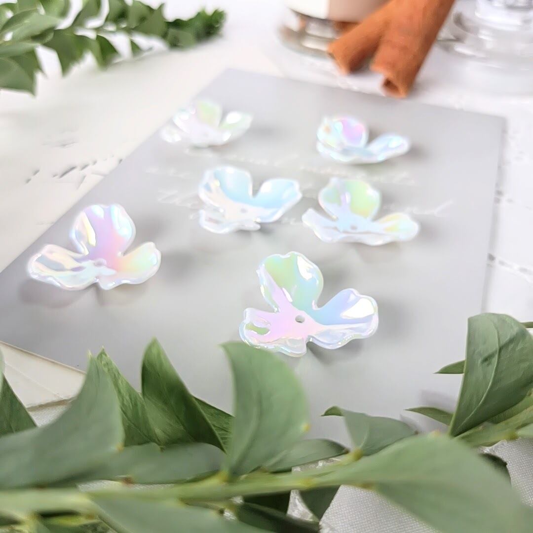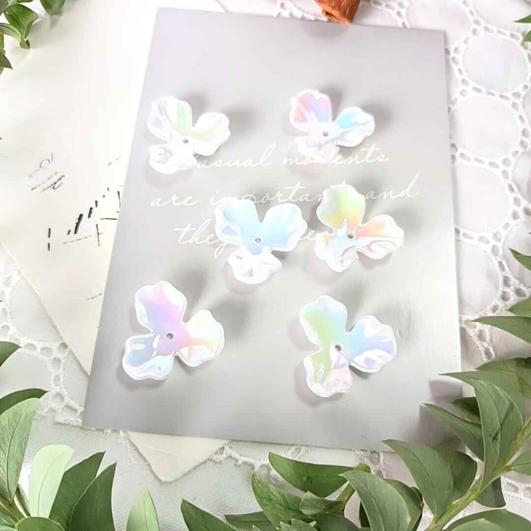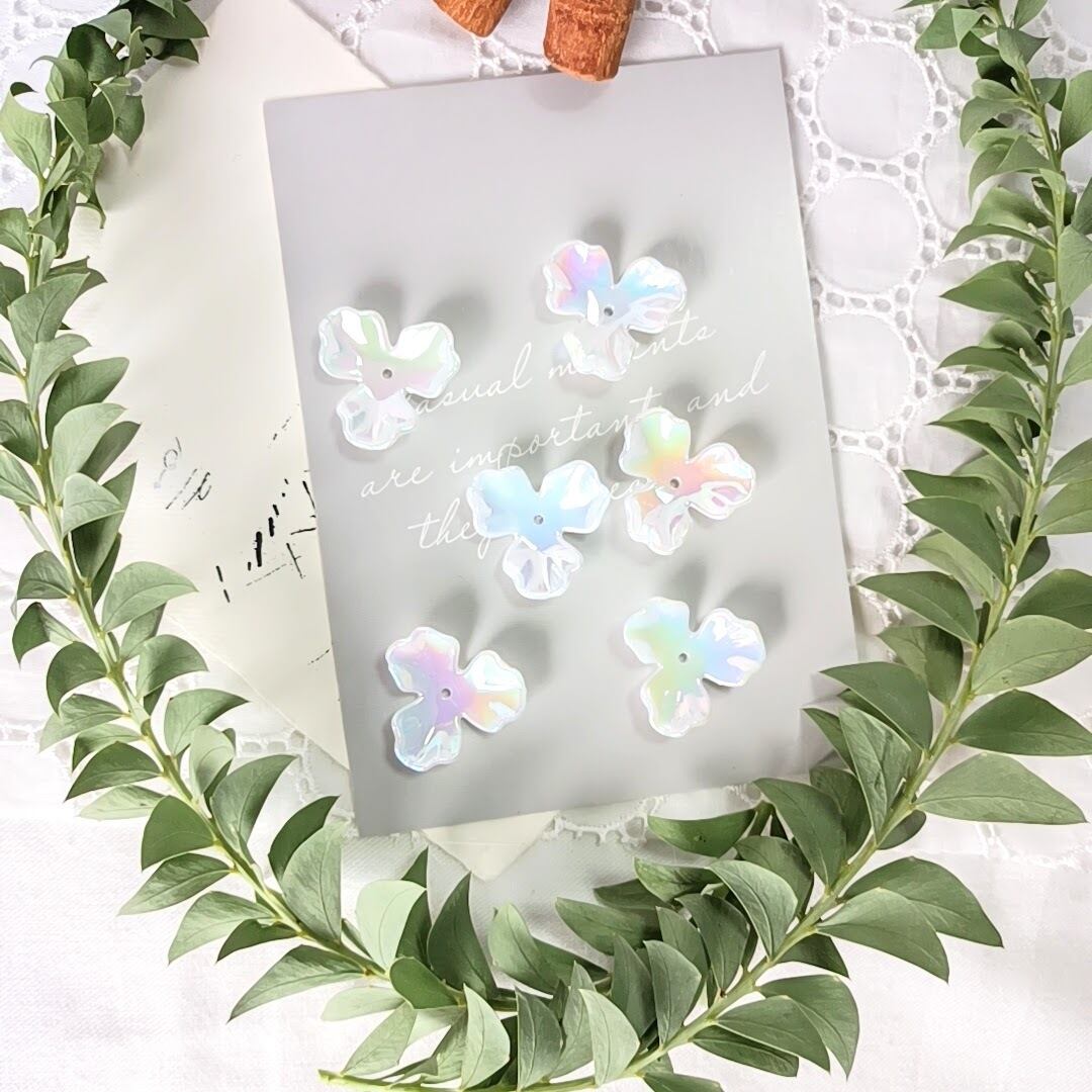 【本気セール】【10個×2】【オーロラホワイト】小ぶり 高品質 アクリル 3弁フラワー 大ぶり 三つ葉 フラワービーズ アクセサリーパーツ ハンドメイド DIY AB066