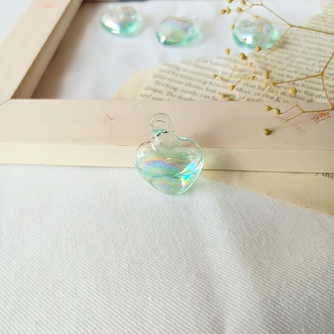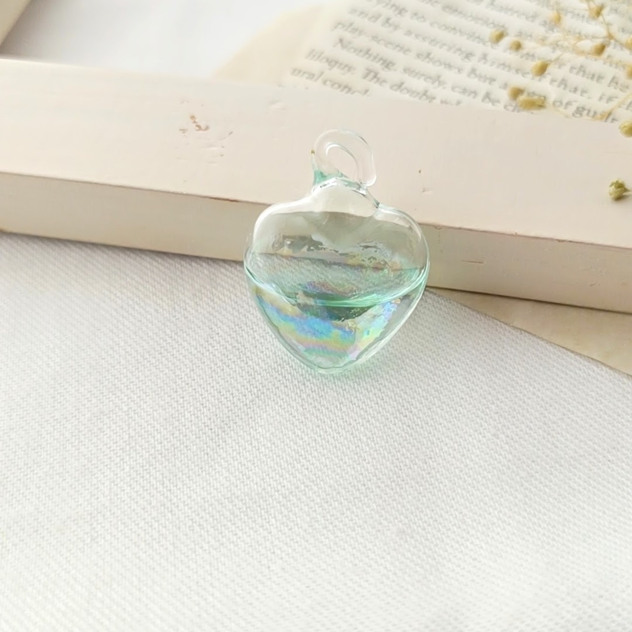 【4個】【グリーン】ハート型 シャボン玉ガラスチャーム オーロラクリア ガラスチャーム アクセサリーパーツ ハンドメイド DIY G002