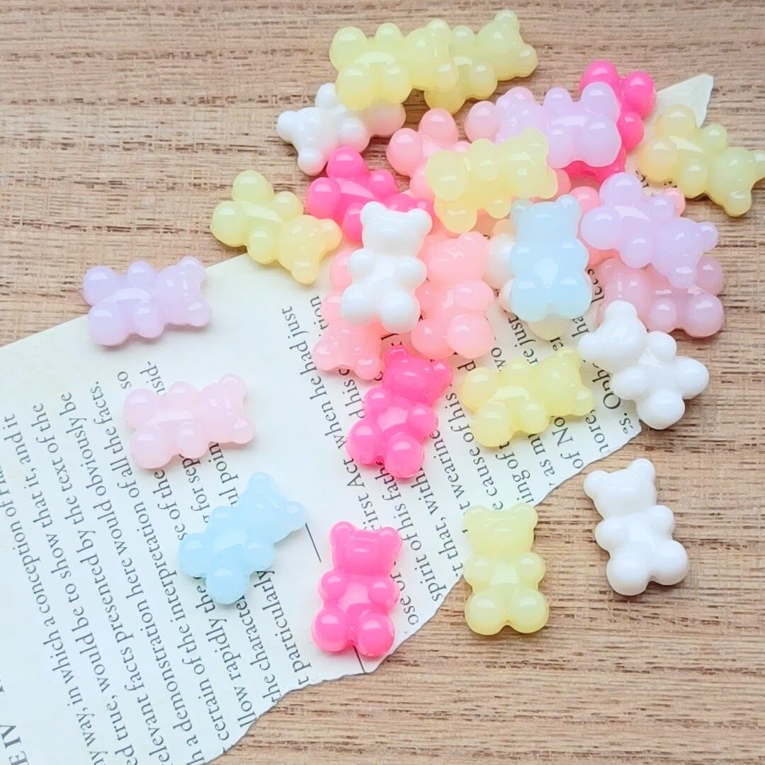 【24個】【ミックス】貫通穴 パステルカラー くまグミ ビーズ くまちゃん バックフラット ゆめかわ ハンドメイド デコパーツ DIY